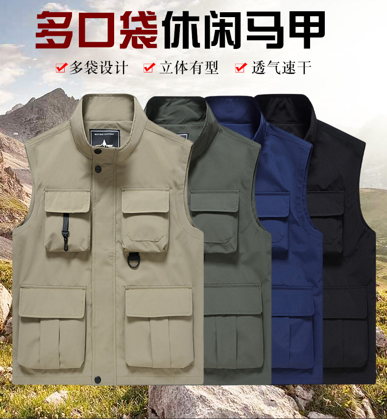 외부 미국 스타일 도구 조끼 사용자 정의 인쇄 로고 통기성 속건 광고 셔츠 조끼 멀티 포켓 작업복 야외
