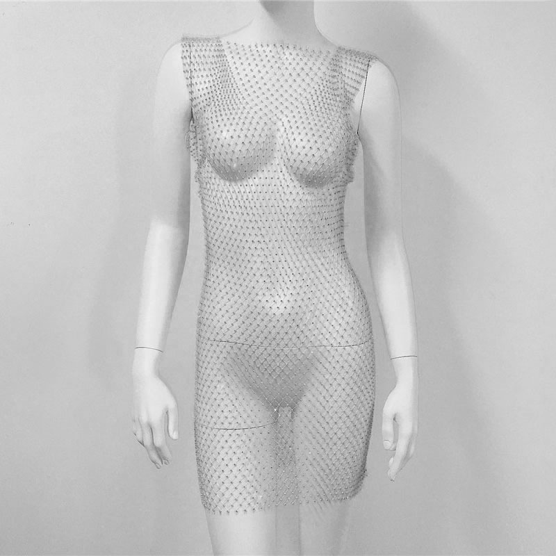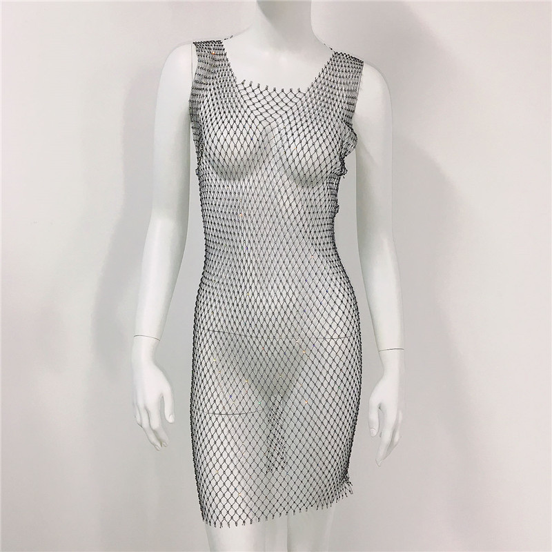 2023 여름 패션 유럽과 미국 여성의 성격 라인 석 메쉬 다이아몬드 원피스 섹시한 검은 망사 뜨거운 소녀 스커트스토어 가기