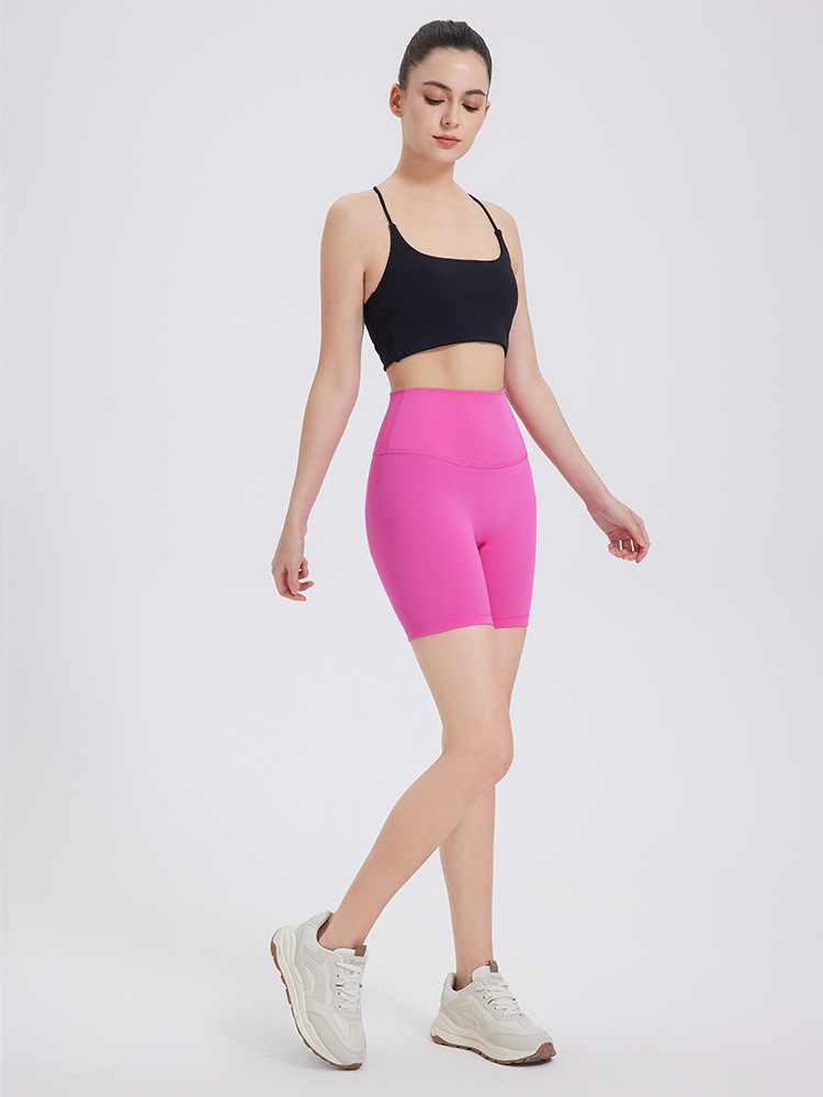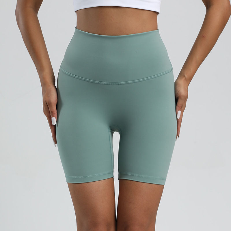 여성용 누드 스포츠 하이웨이스트 타이트 반바지 요가복 나일론 반바지 복숭아 엉덩이 리프팅 타이트 고탄성 쿼터 팬츠
