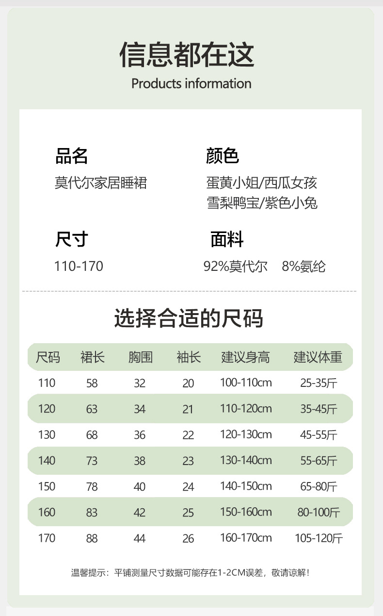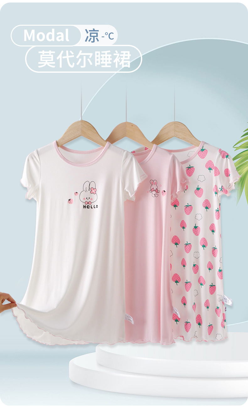 소녀들의 잠옷 60 모달 여름 어린이 보물 반팔 집 옷 공주 스타일 어린이 잠옷 엄선