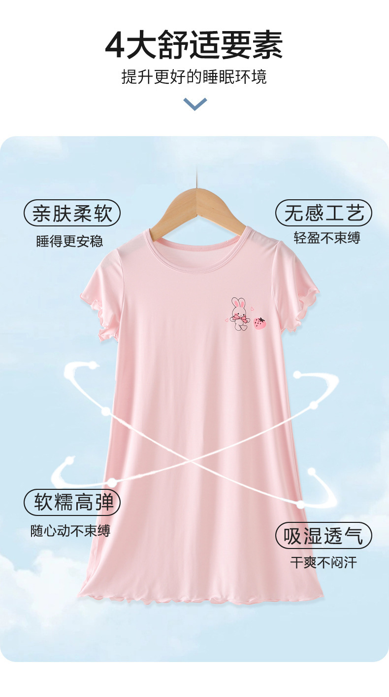 소녀들의 잠옷 60 모달 여름 어린이 보물 반팔 집 옷 공주 스타일 어린이 잠옷 엄선스토어 가기