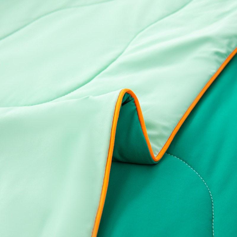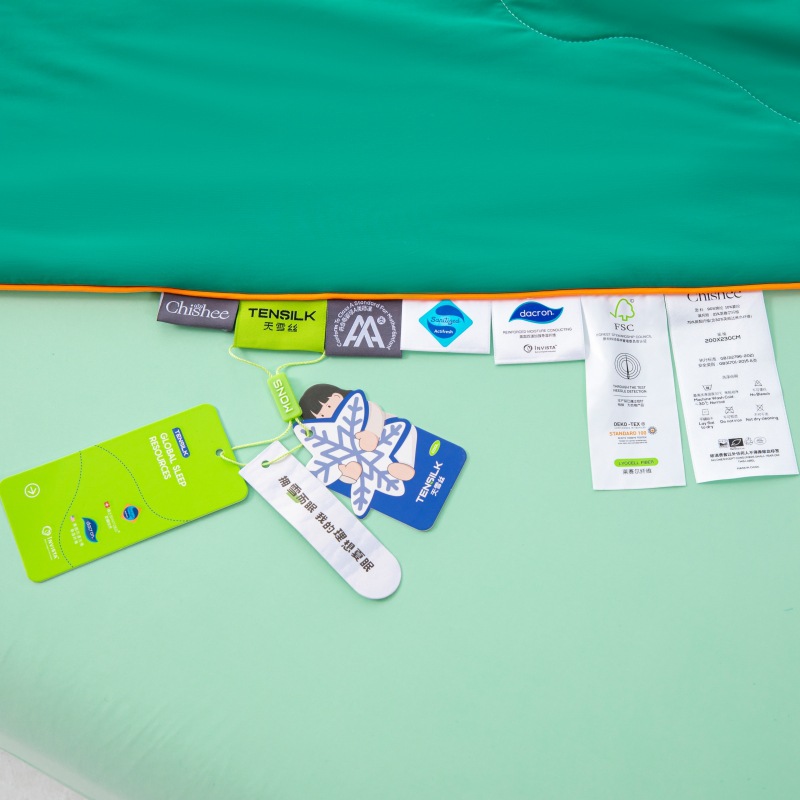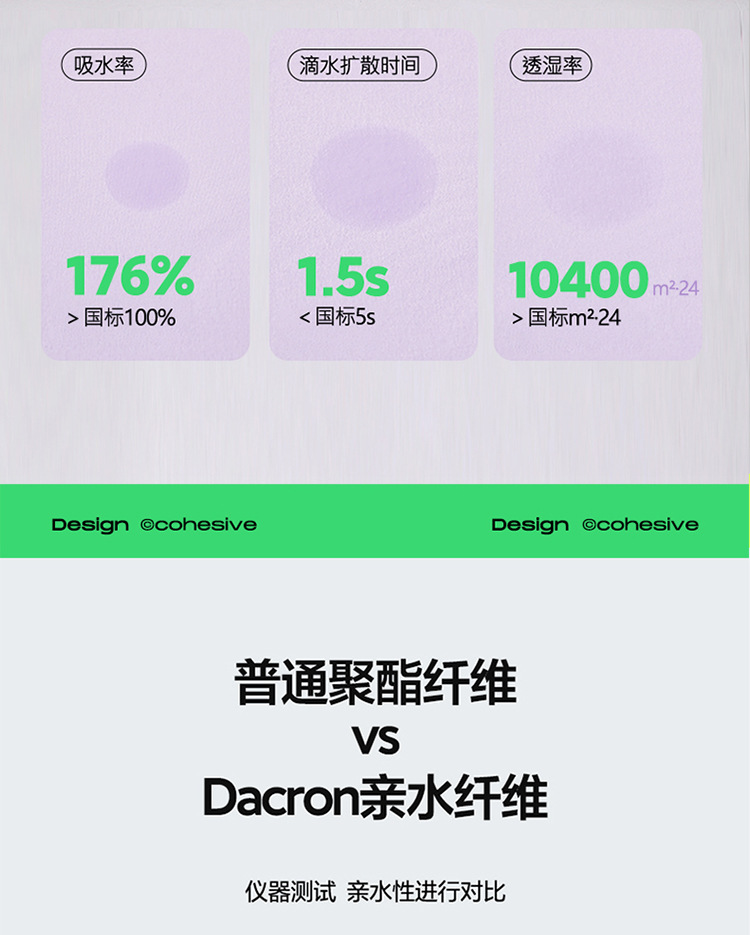 填充采用21%莱赛尔79%聚酯纤维,使织物更加柔软舒适, 引用COOLMAX技术处理,使纤维中的空气流通加快,排湿散热效果更佳并且有良好的吸湿性。