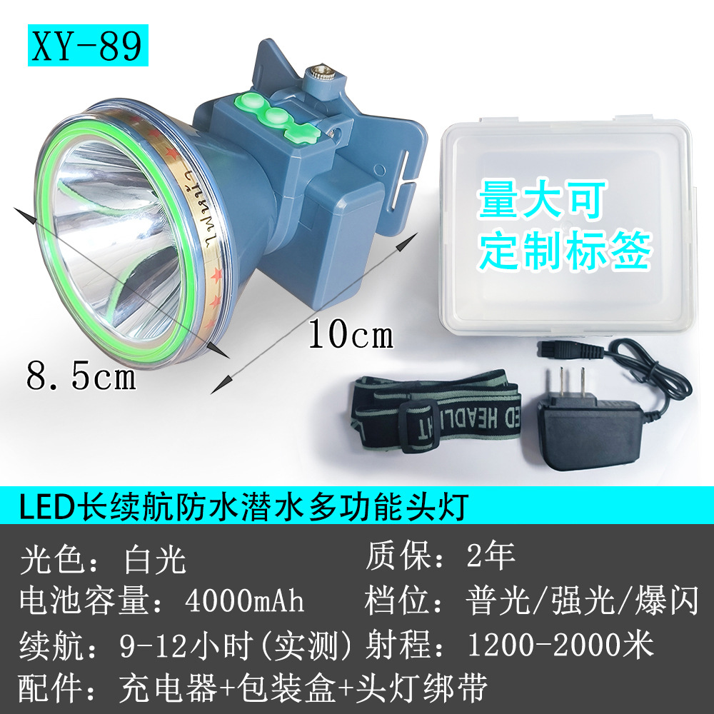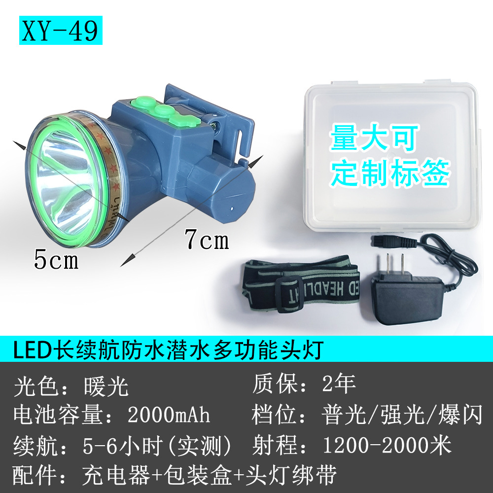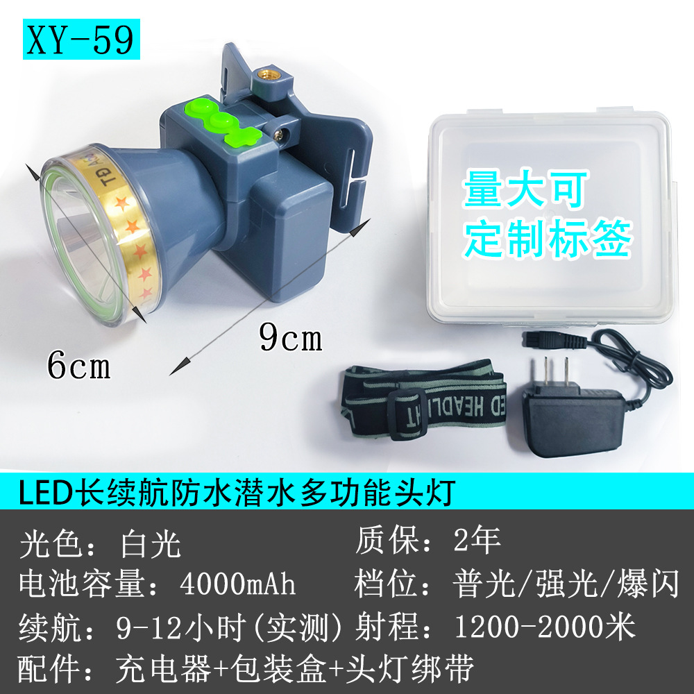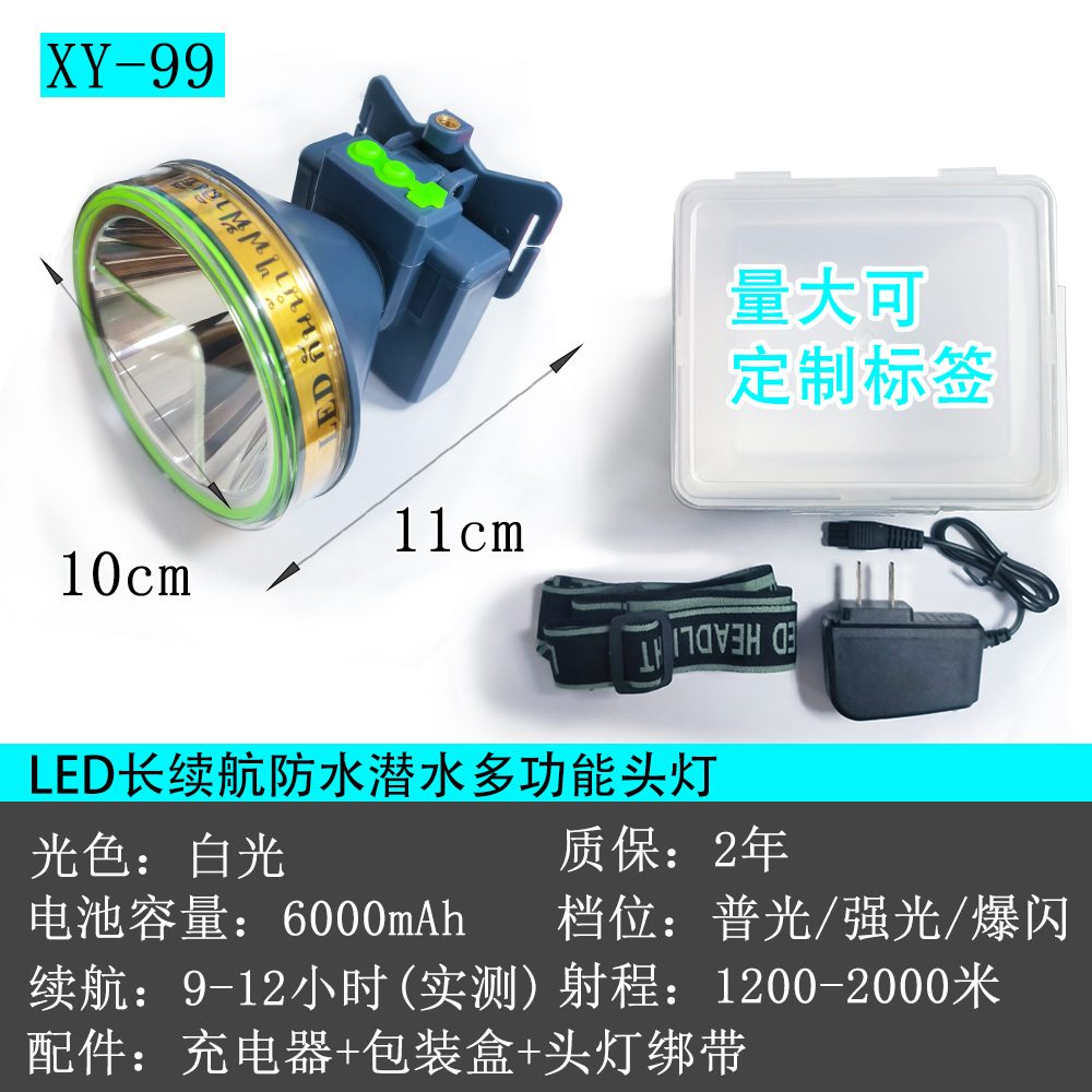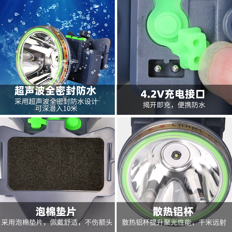 야외용 초고휘도, 장시간 사용 가능 LED 강력 조명 방수 헤드램프, 전문 야외 낚시 및 다이빙 낚시 헤드 장착형 충전식
