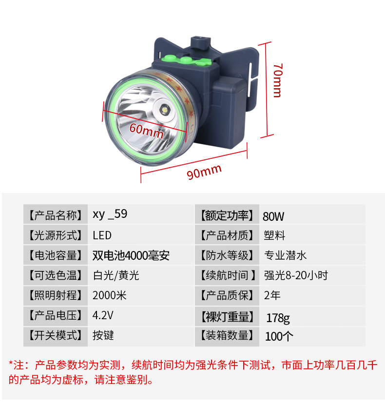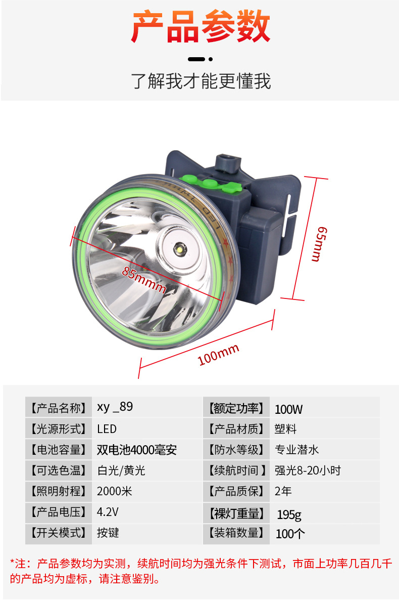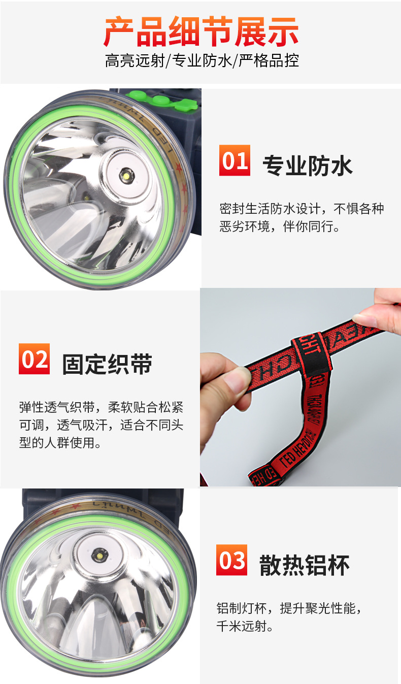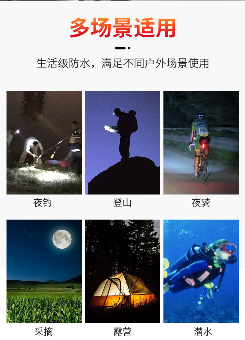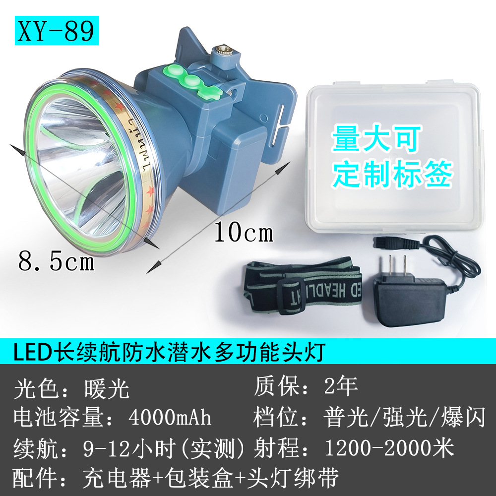 야외용 초고휘도, 장시간 사용 가능 LED 강력 조명 방수 헤드램프, 전문 야외 낚시 및 다이빙 낚시 헤드 장착형 충전식