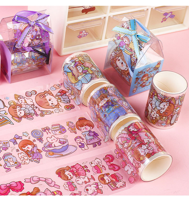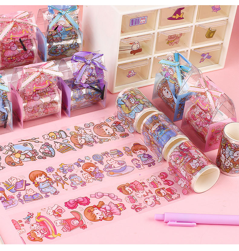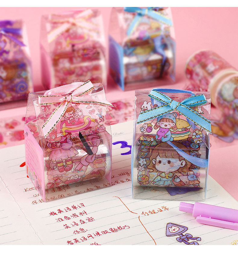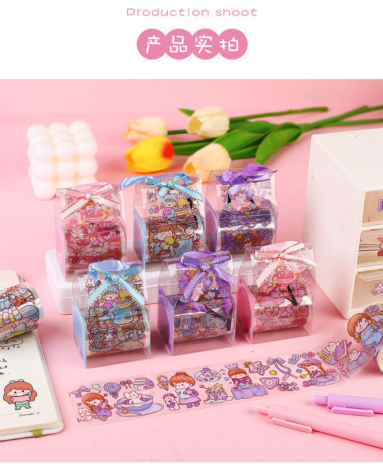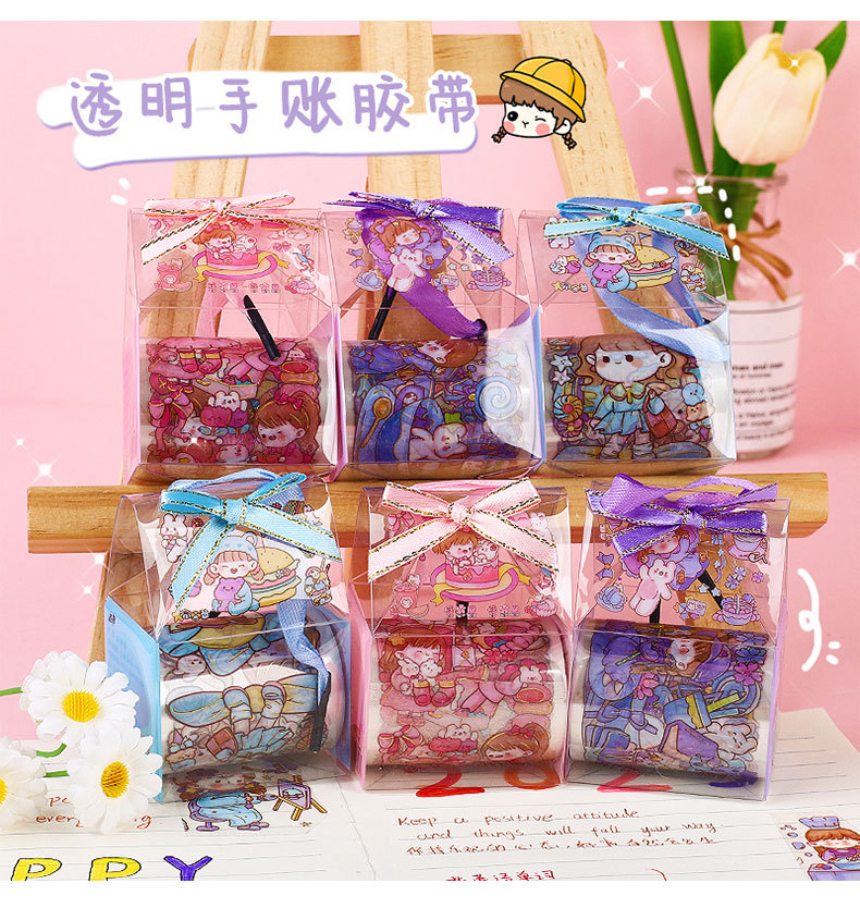 만화 PET 방수 손 계정 휴대용 테이프 스티커 학생 일기 DIY 귀여운 선물 상자 세트 장식 재료 스티커
