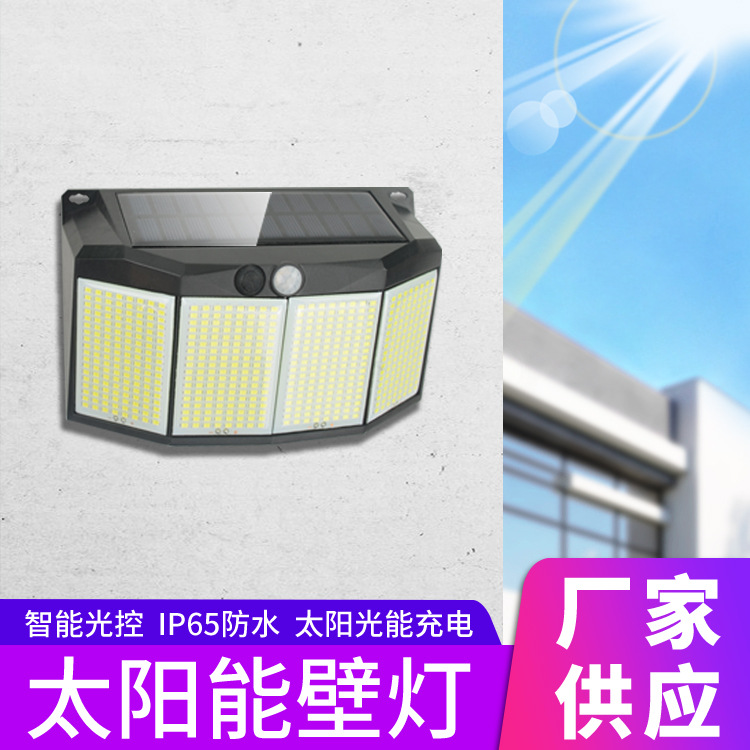 태양열 야외 방수 인체 유도 벽 조명 4 면 조명 576LED 태양열 정원 조명