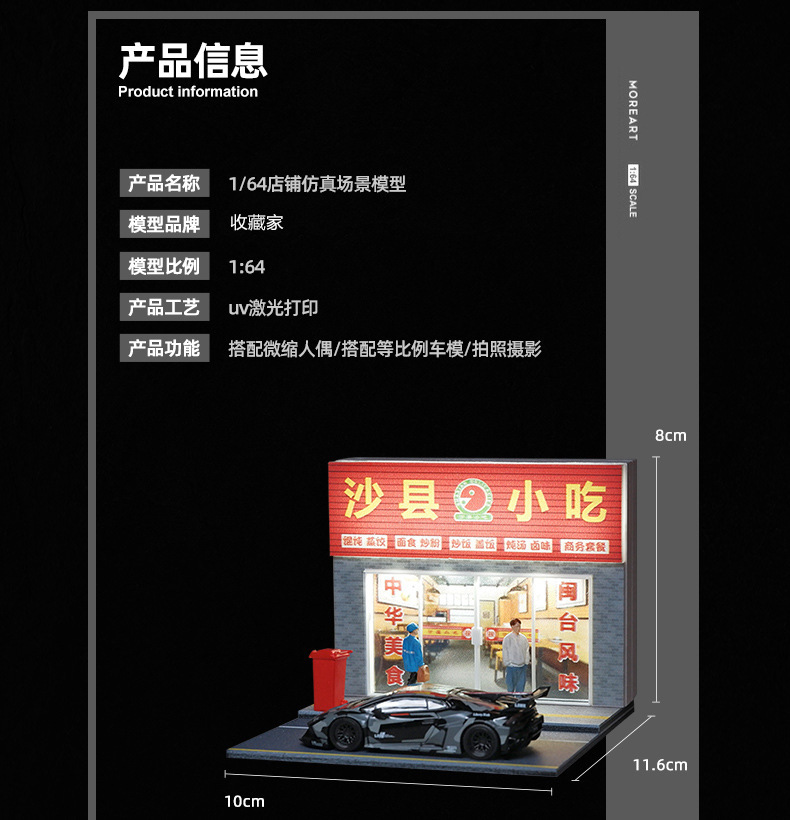 시뮬레이션 1:64 소형 맥도날드 711 편의점 슈퍼마켓 건물 장면 모델 자동차 거리 장면 마이크로 장면스토어 가기