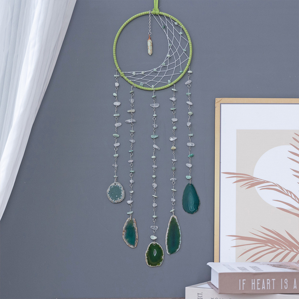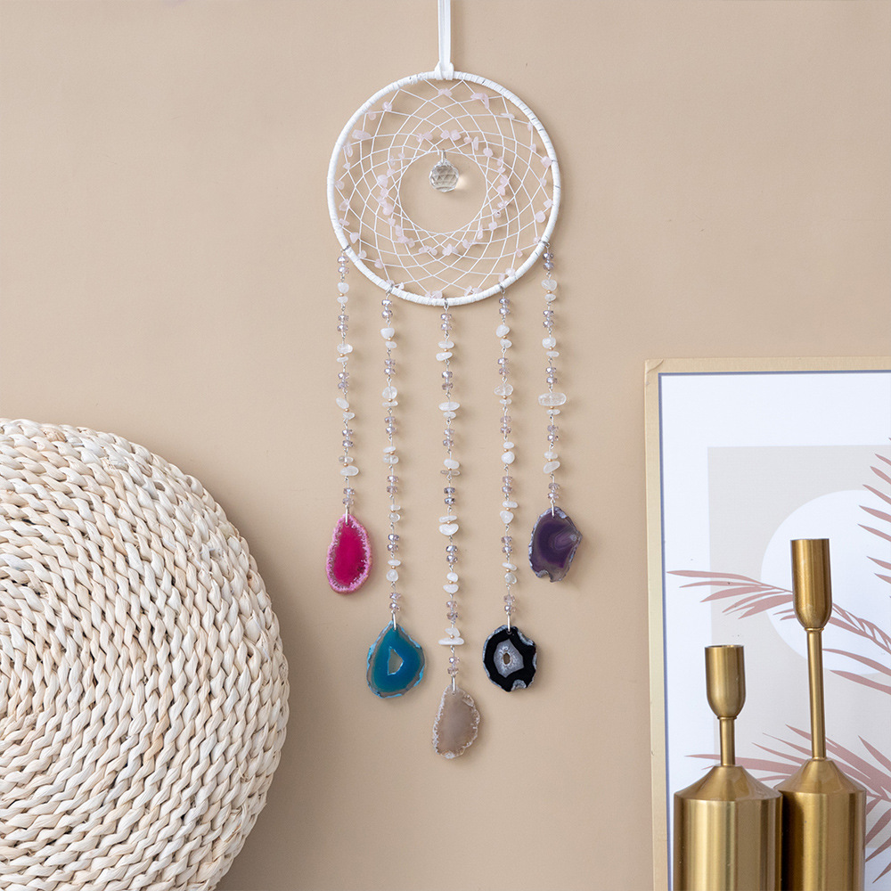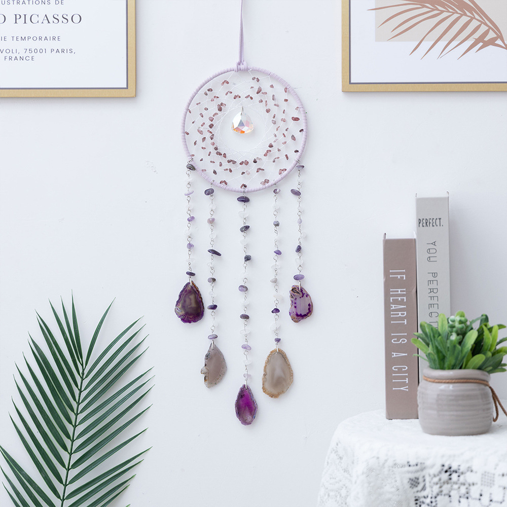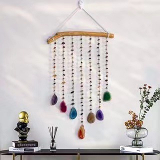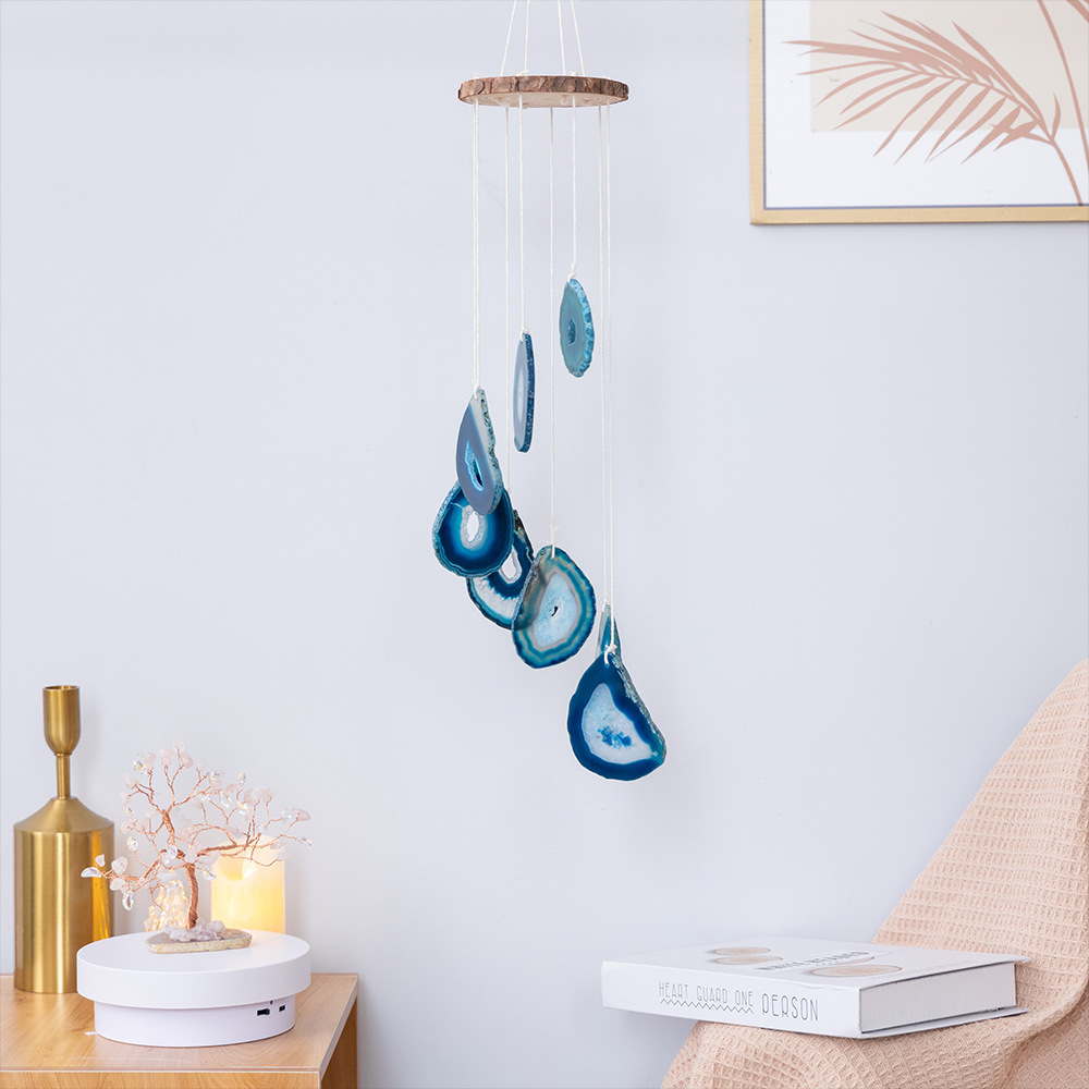 출처 제조업체 아마존 천연 석재 분말 동글 마노 조각 바람 차임 보석 선물 좋은 짠 그물 가죽 로프