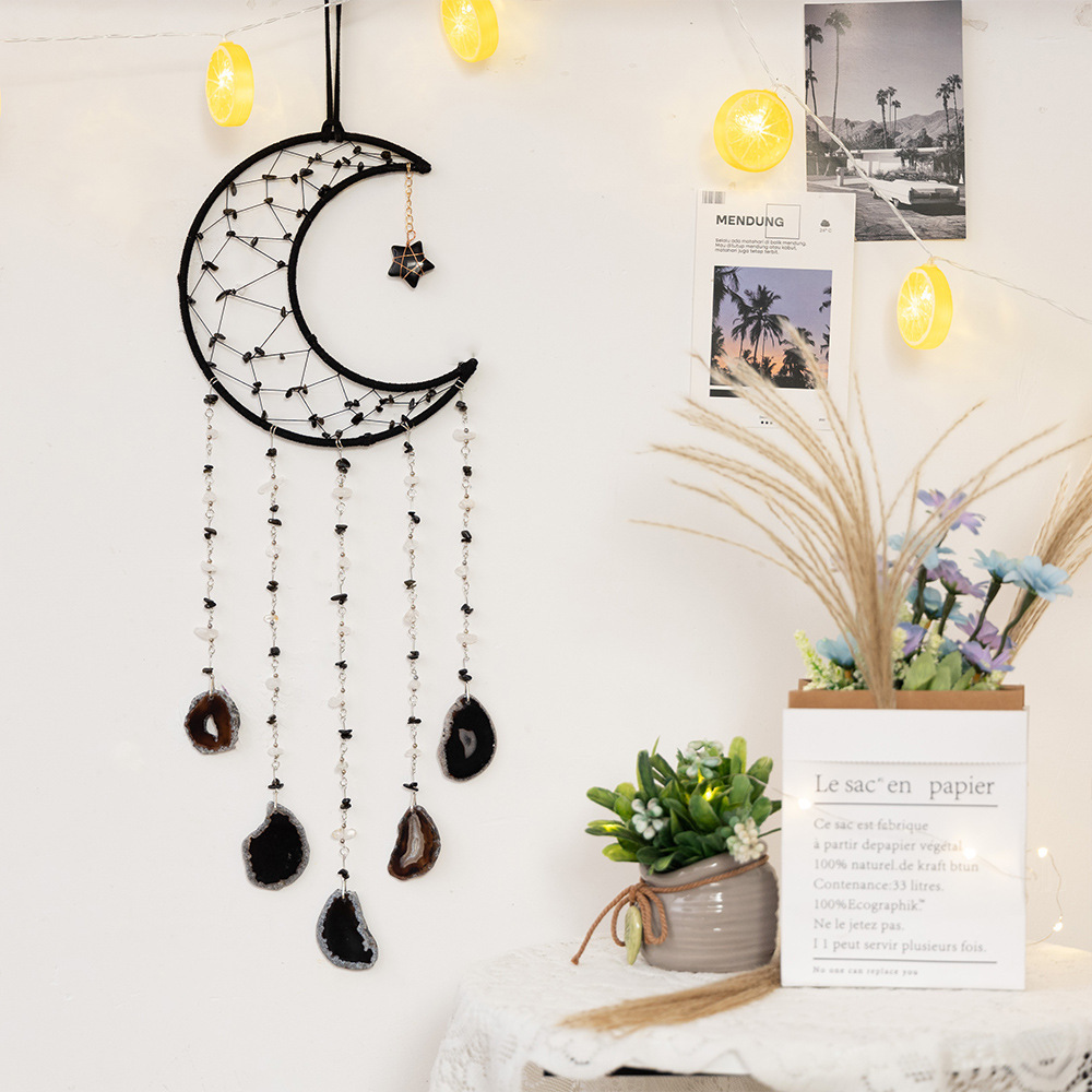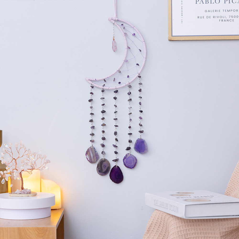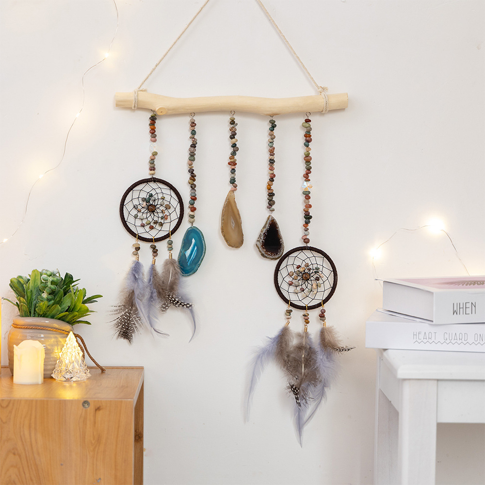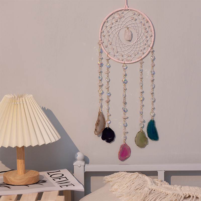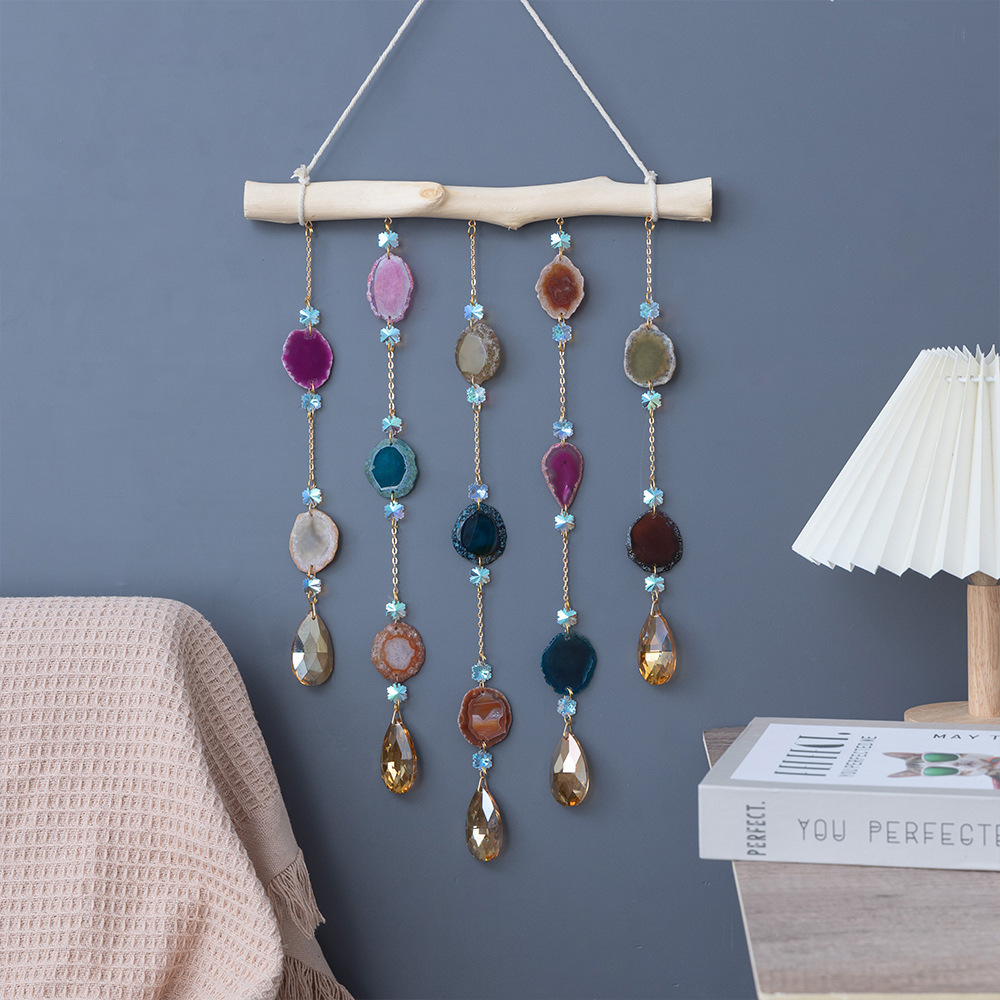 출처 제조업체 아마존 천연 석재 분말 동글 마노 조각 바람 차임 보석 선물 좋은 짠 그물 가죽 로프