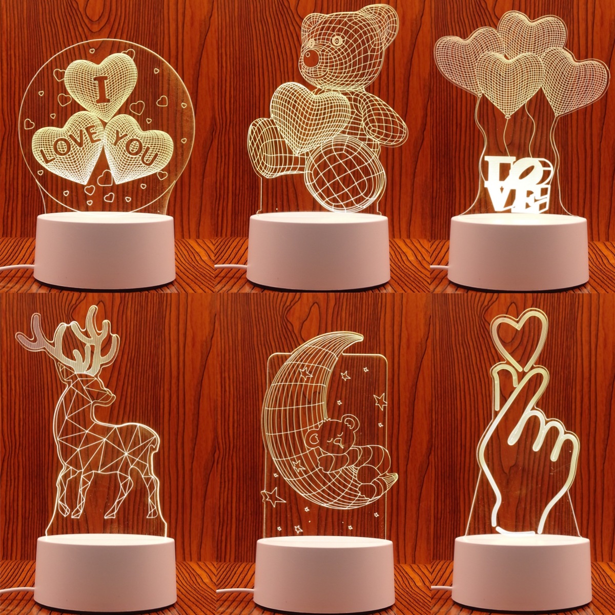새로운 3d 야간 조명 만화 사슴 달 곰 사랑 심장 모양 발렌타인 데이 야간 조명 도매 크리 에이 티브 usb스토어 가기