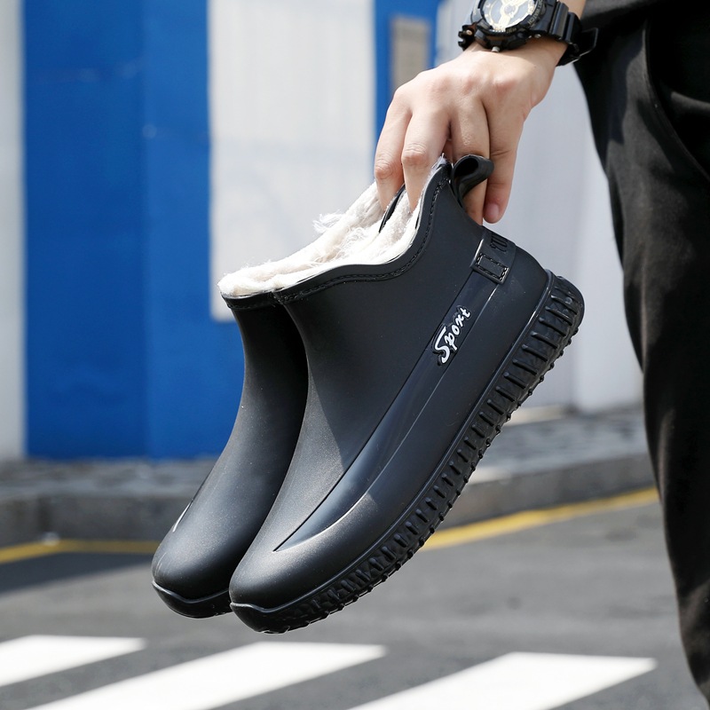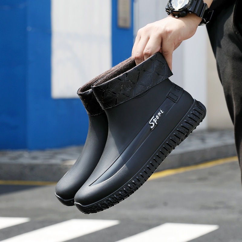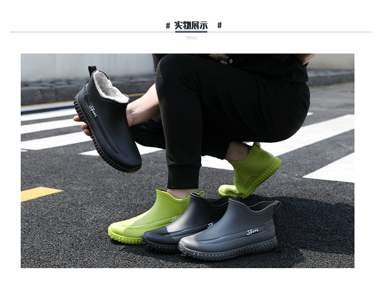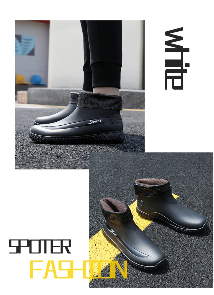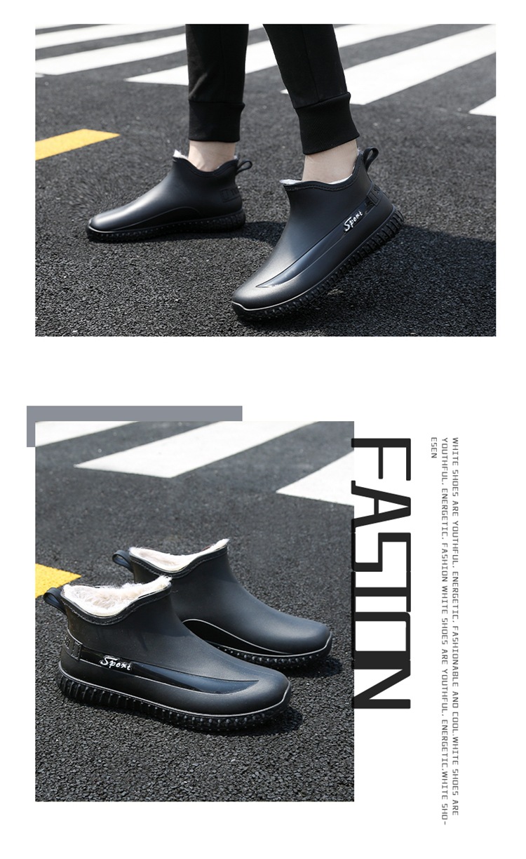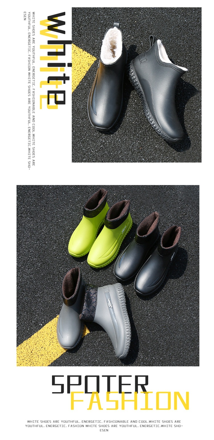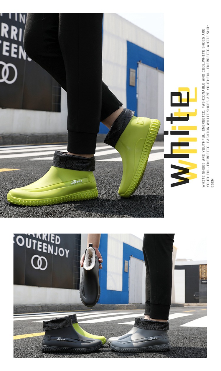 레인 부츠 짧은 튜브 남자의 미끄럼 방지 내마 모성 낚시 물 신발 2023 새로운 남자의 기모 고무 신발 방수 레인 부츠