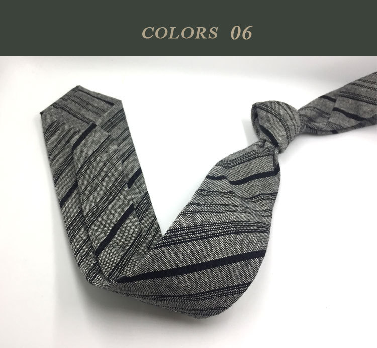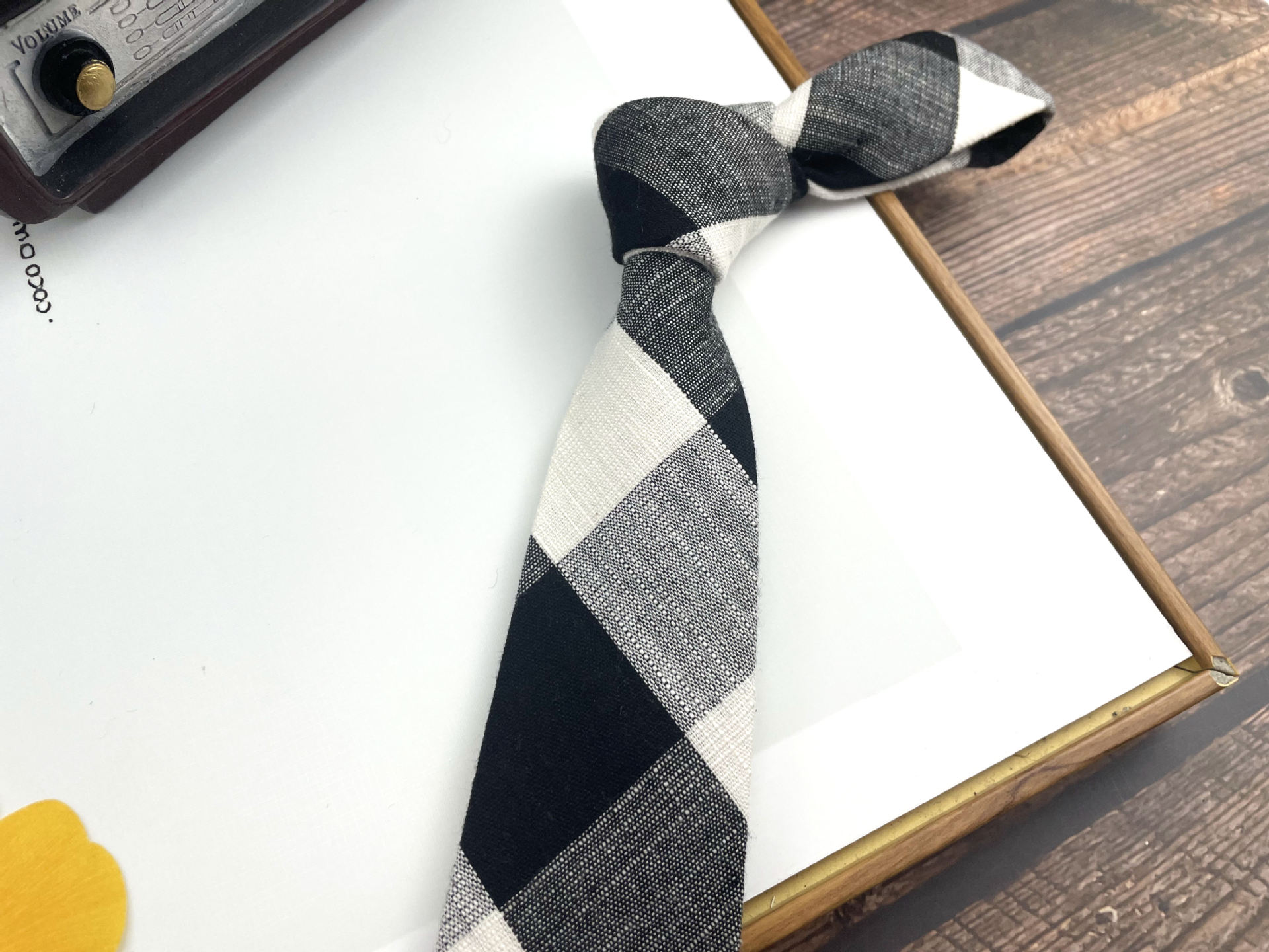 • 검은 회색 흰색면 린넨 넥타이 손 6.5CM