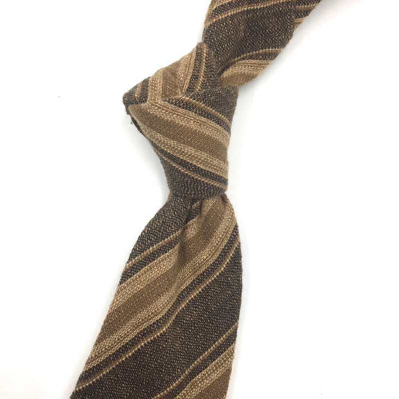 • 브라운 스트라이프 코튼 린넨 타이 핸드 타이 6.5CM