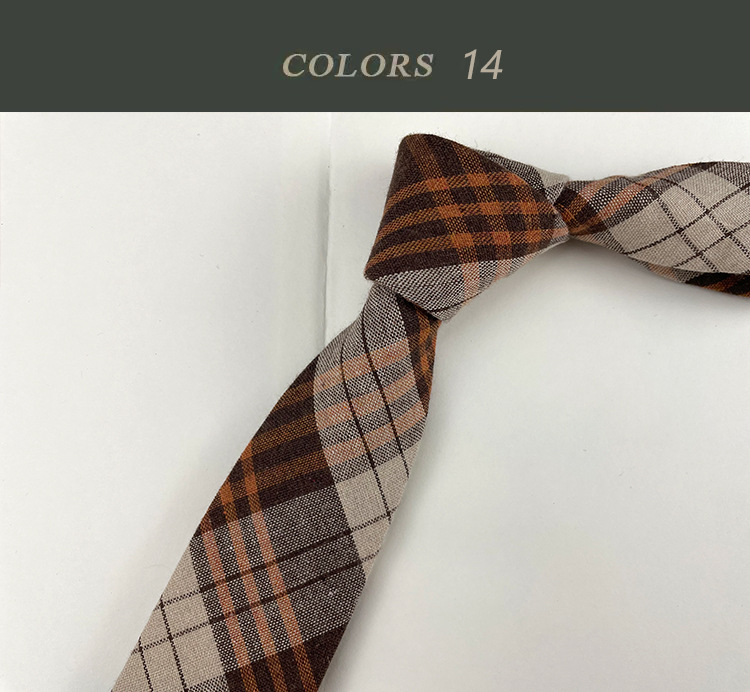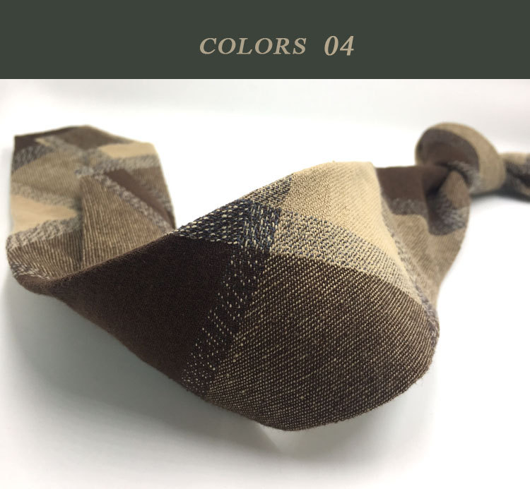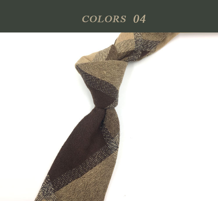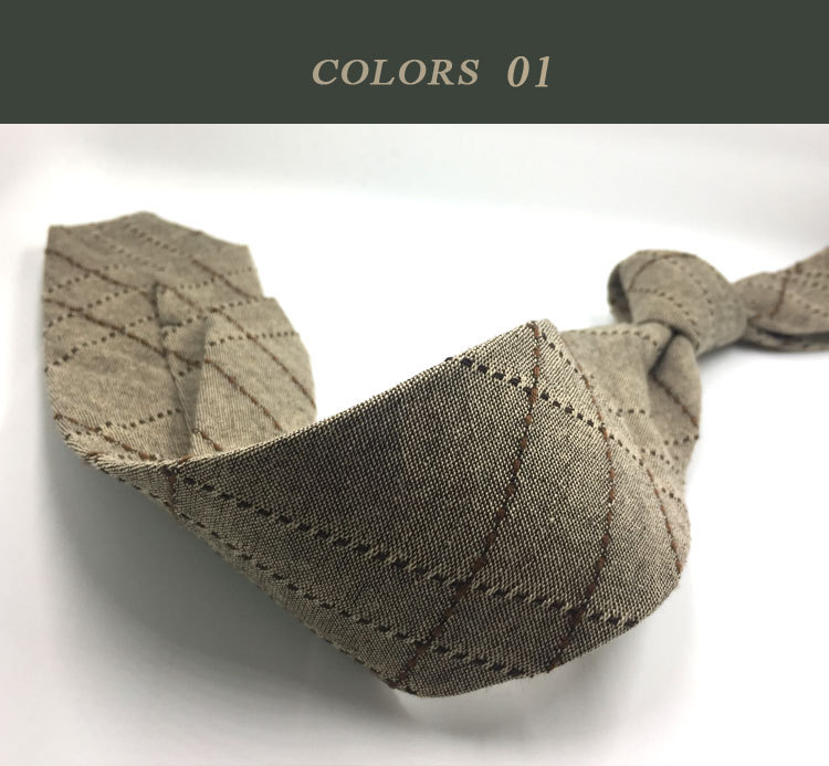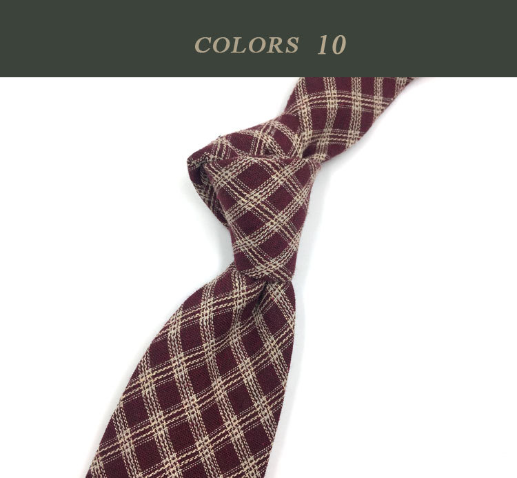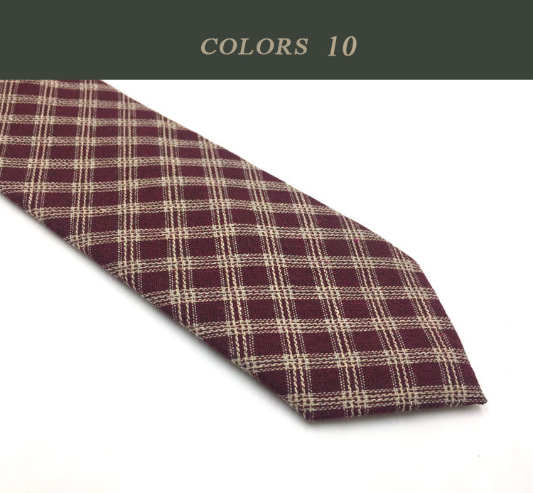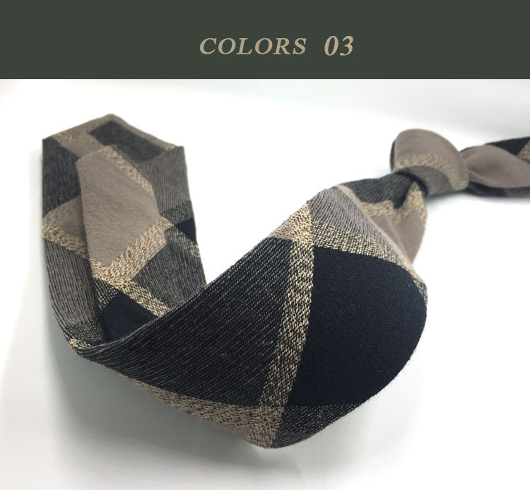 다크 브라운 카키 린넨 코튼 다크 레드 블랙 매트 격자 무늬 복고풍 캐주얼 영국 일본어 7cm 틈새 넥타이
