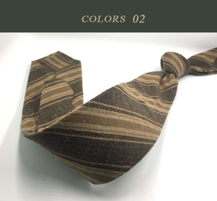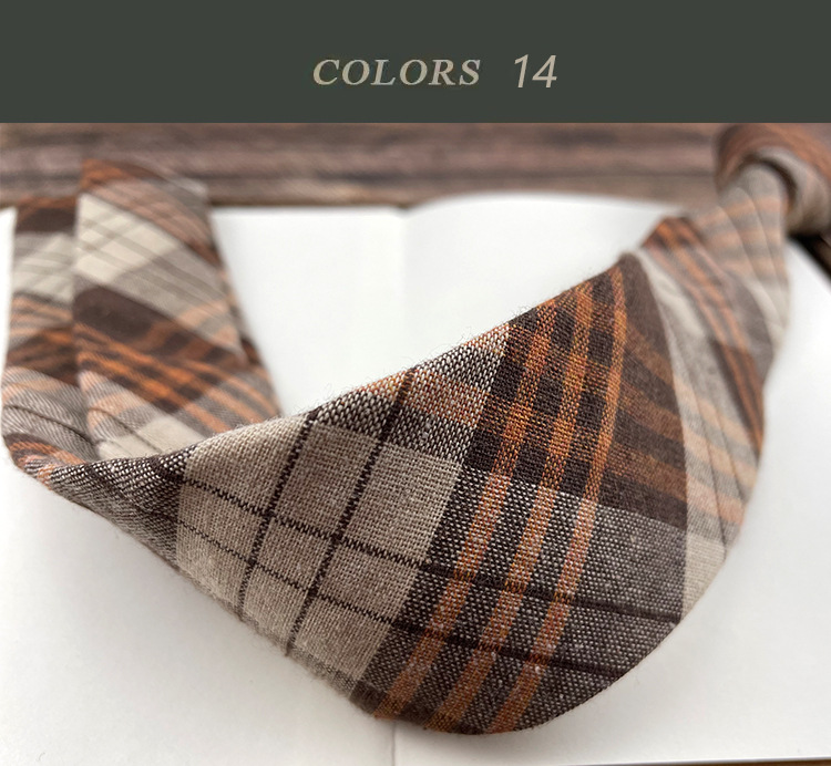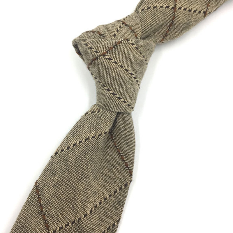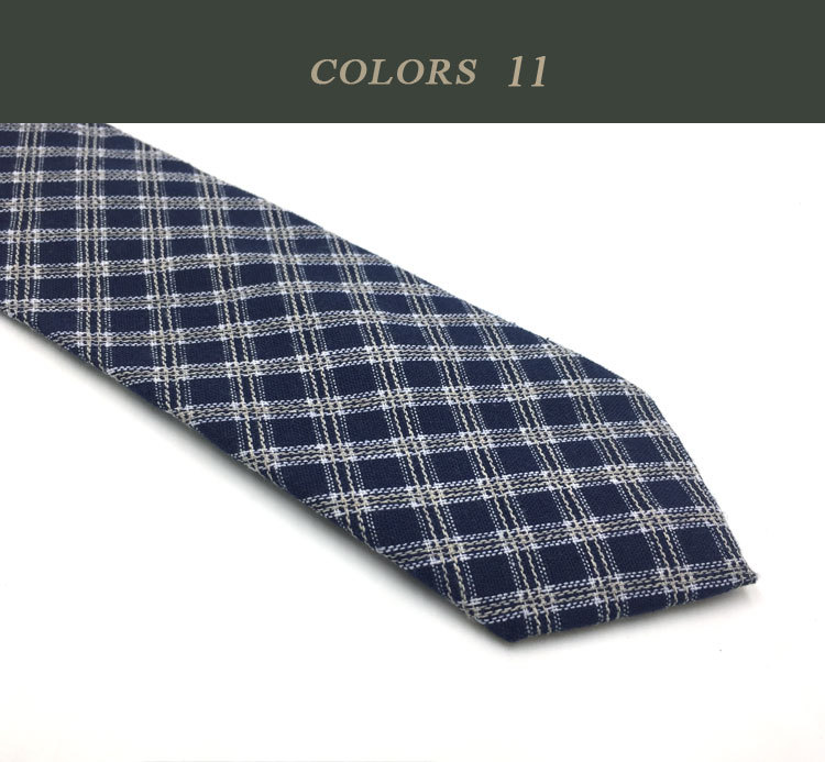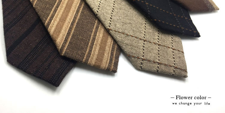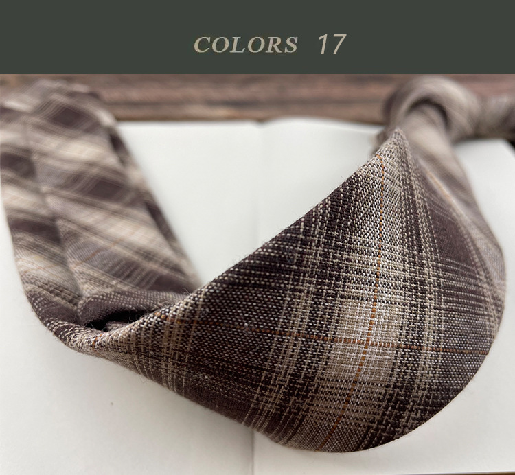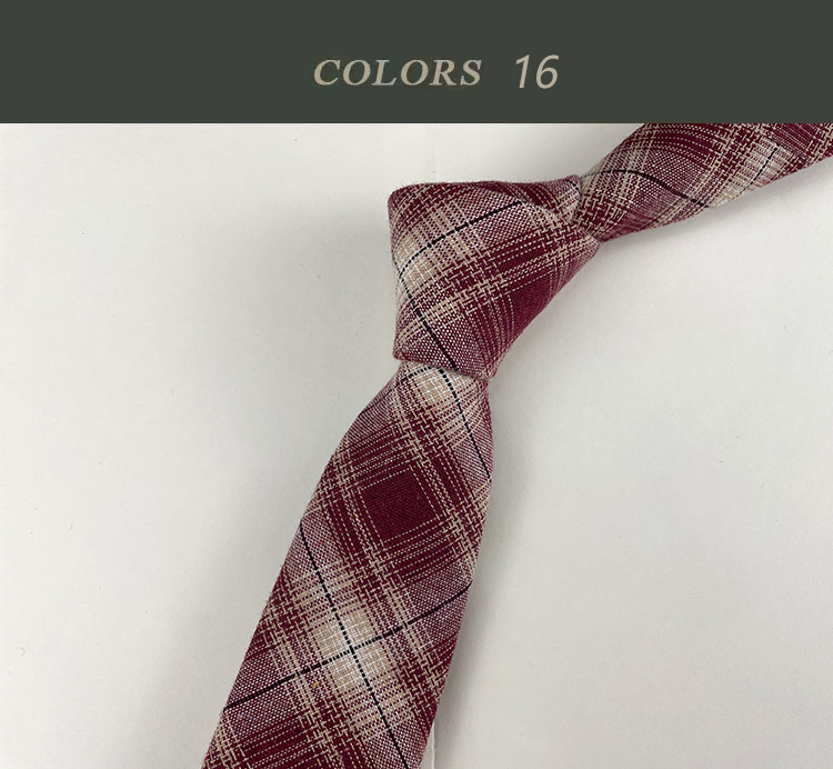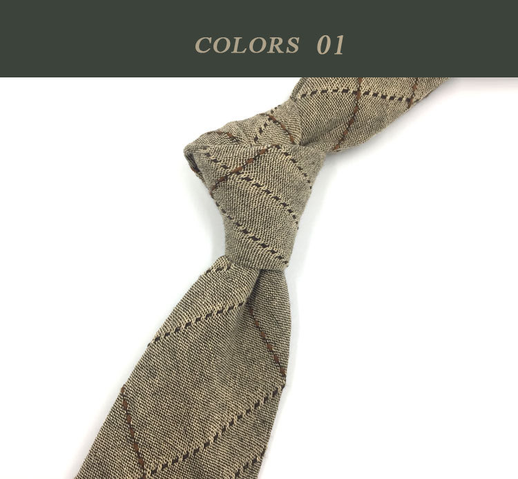 다크 브라운 카키 린넨 코튼 다크 레드 블랙 매트 격자 무늬 복고풍 캐주얼 영국 일본어 7cm 틈새 넥타이