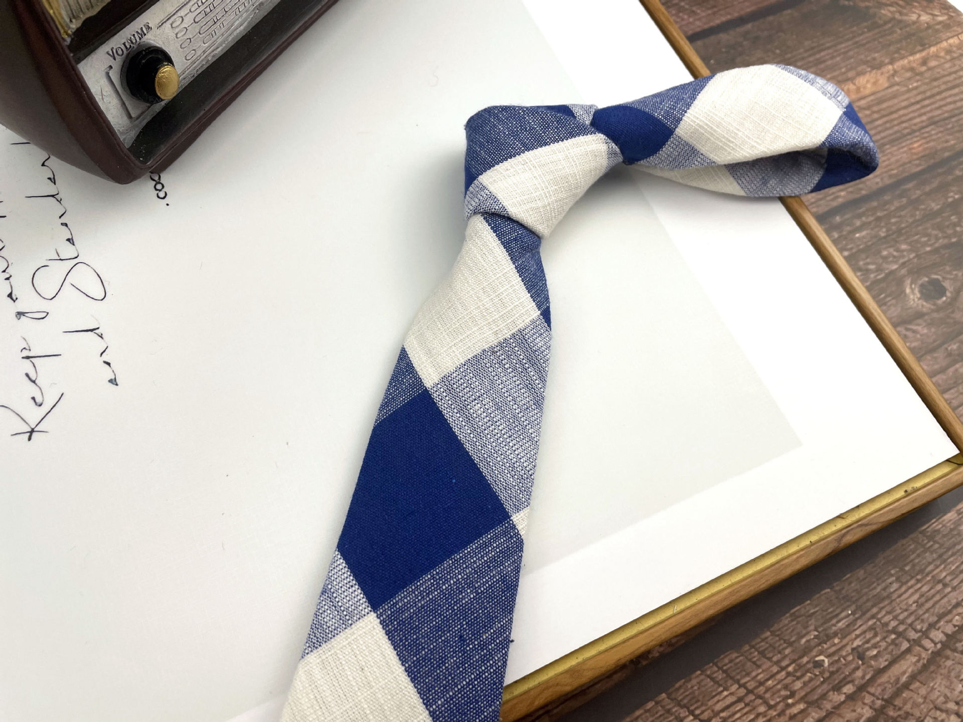 • 파란색과 흰색면 린넨 넥타이 손 6.5CM