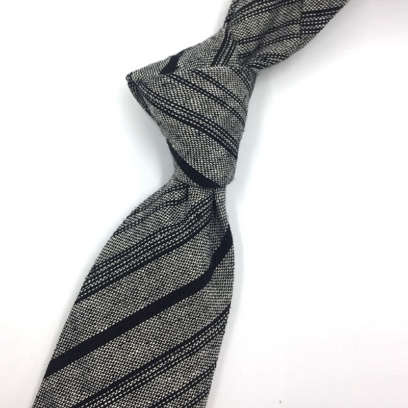 • 그레이 블랙 거친 스트라이프 코튼 린넨 넥타이