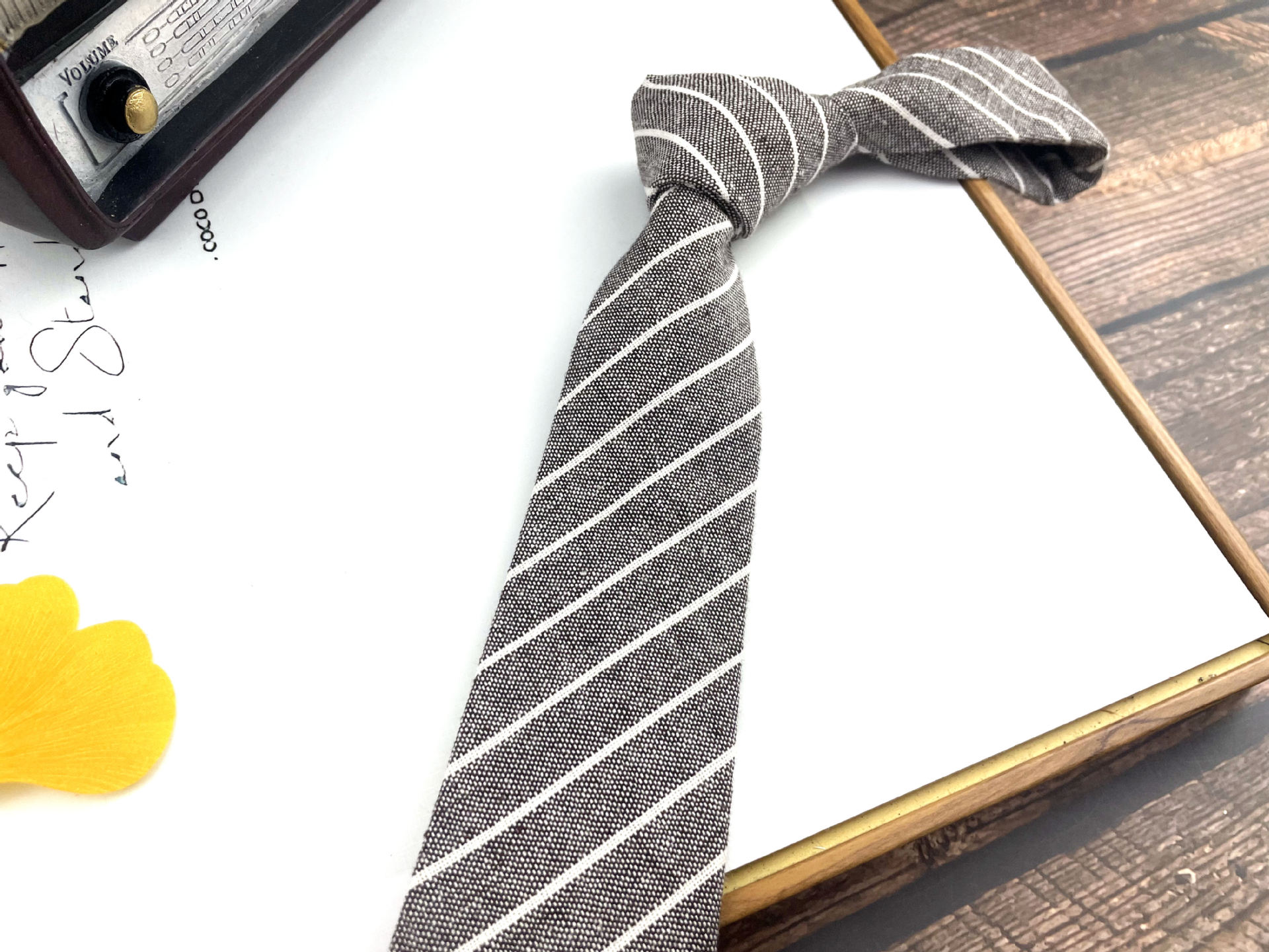 • 그레이 카페 화이트 페어 코튼 리넨 타이 6.5CM