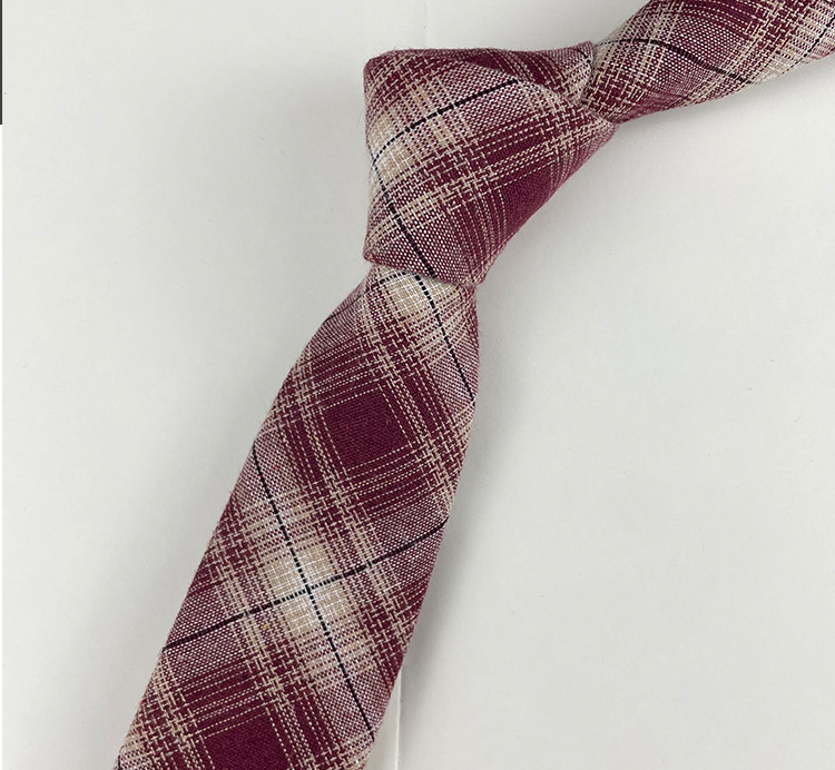 다크 브라운 카키 린넨 코튼 다크 레드 블랙 매트 격자 무늬 복고풍 캐주얼 영국 일본어 7cm 틈새 넥타이스토어 가기