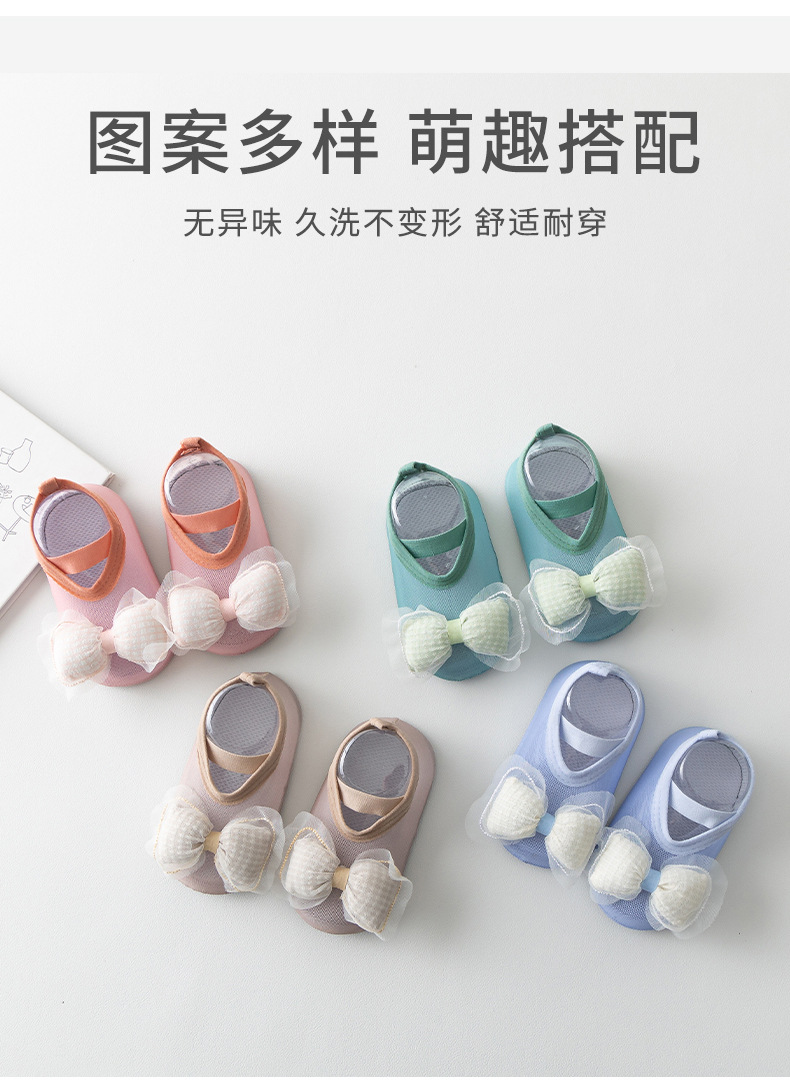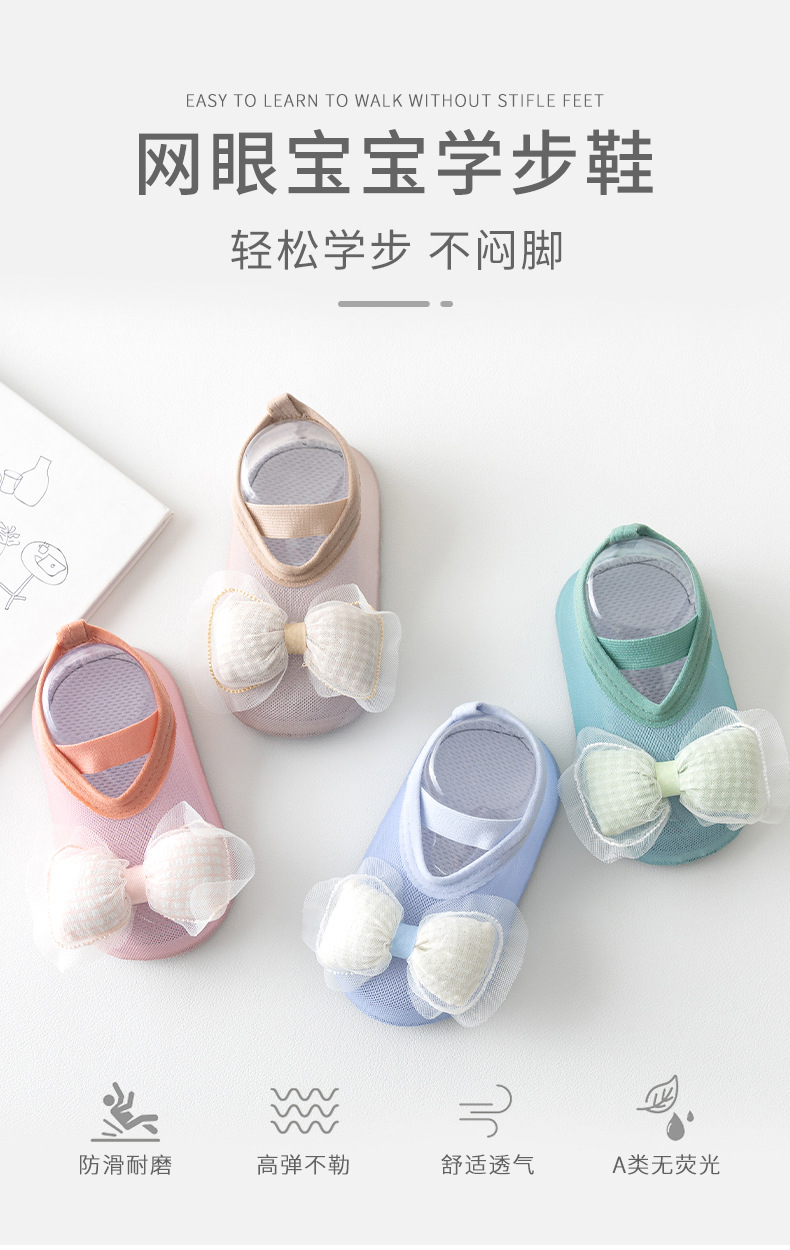 미끄럼 방지 부드러운 바닥 아기 바닥 신발 봄 여름 아기 걸음마 신발 어린이 신발 양말 세트 여자아이 리본 바닥 양말