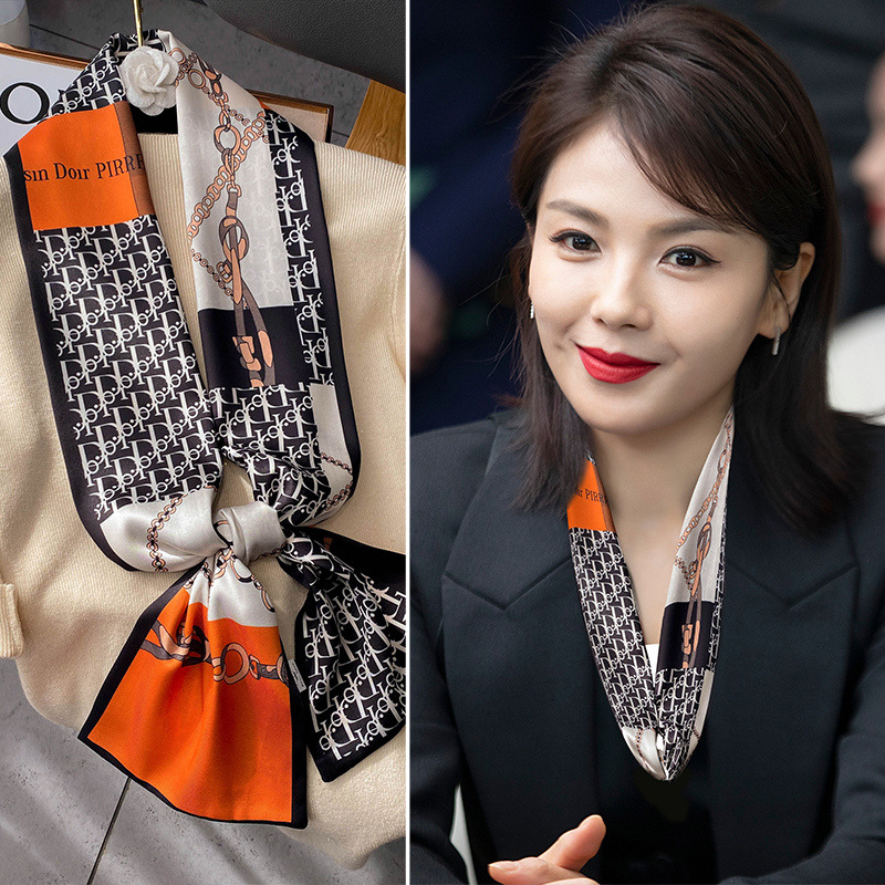 좁은 실크 스카프 작은 긴 여성의 봄과 가을 새로운 패션 모든 매치 헤어 밴드 스카프 세련된 장식 여름 매칭 셔츠스토어 가기