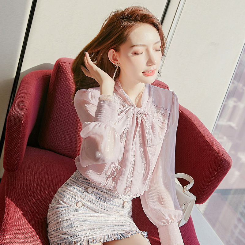 11128 원피스 도매 2025 가을 신상 프렌치 스타일 셔츠 정교한 쉬폰 여성 긴팔 출근복스토어 가기