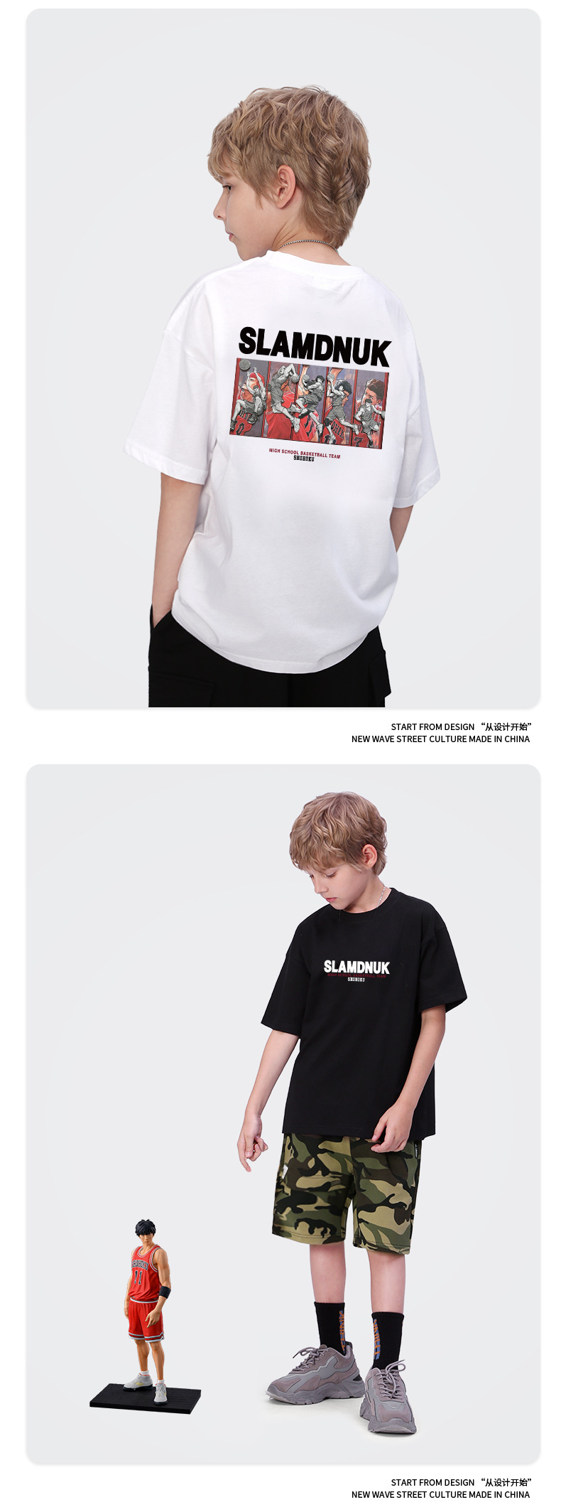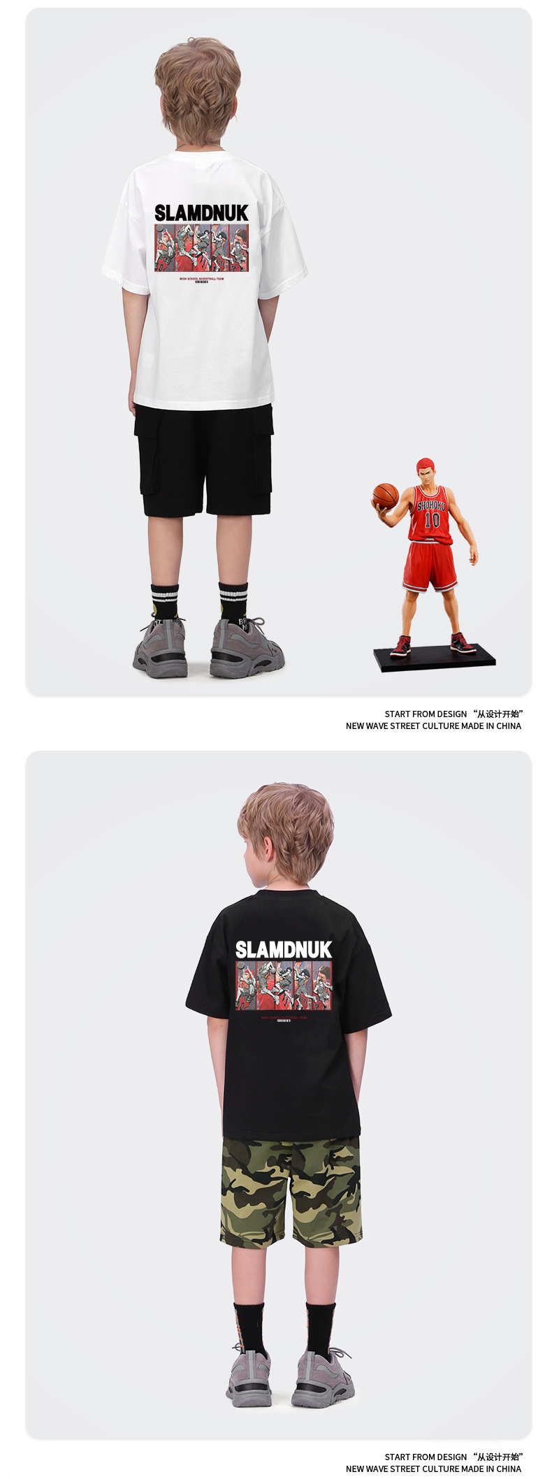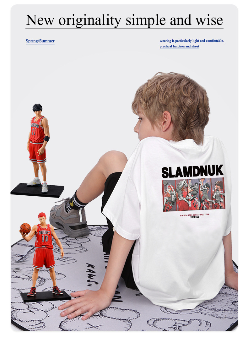 남아 반팔 티셔츠 사쿠라기 플라워 로드 SHOKU 북호남 팀 3D 프린트 슬램 덩크 마스터 어린이 루즈한 탑