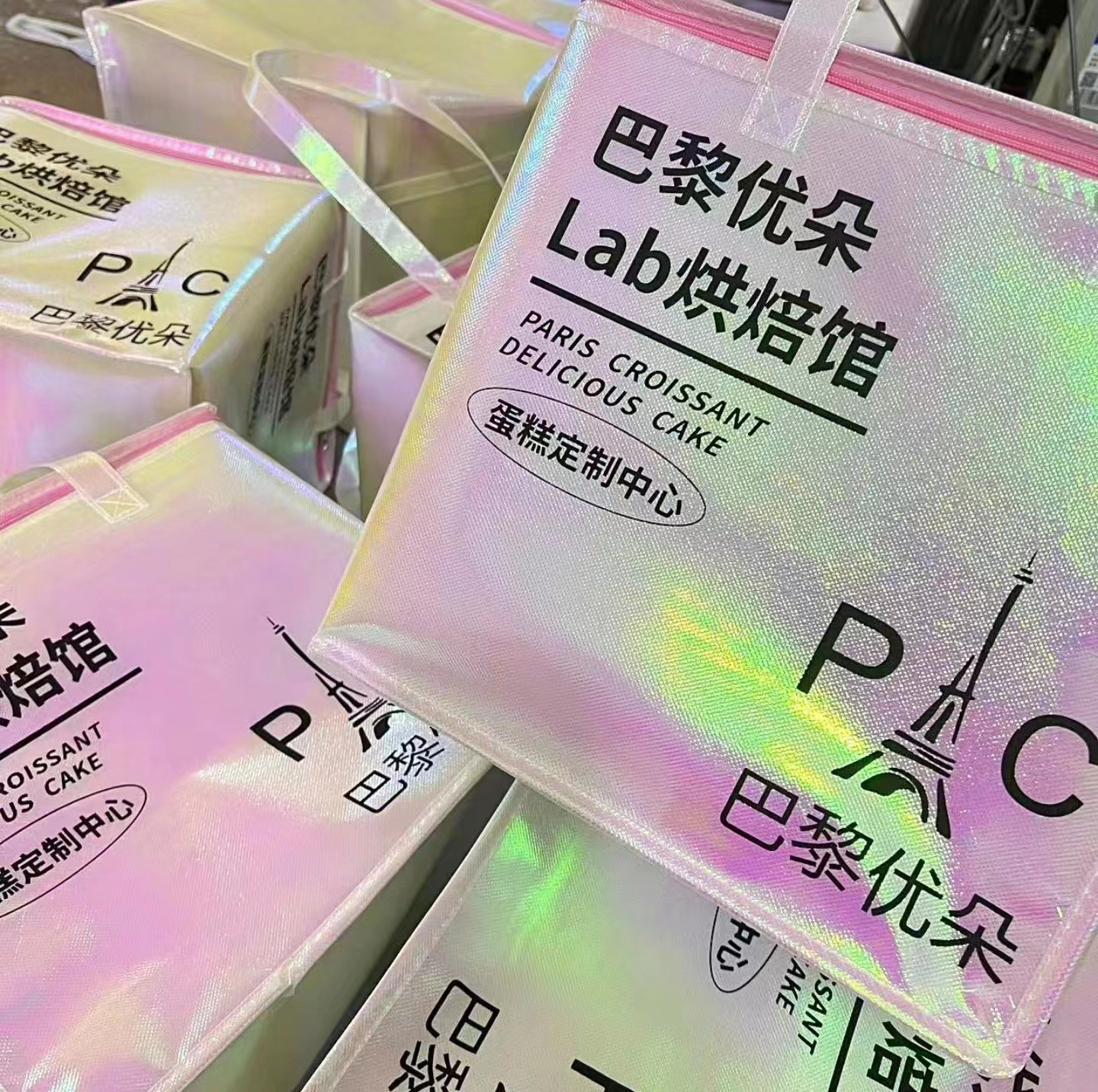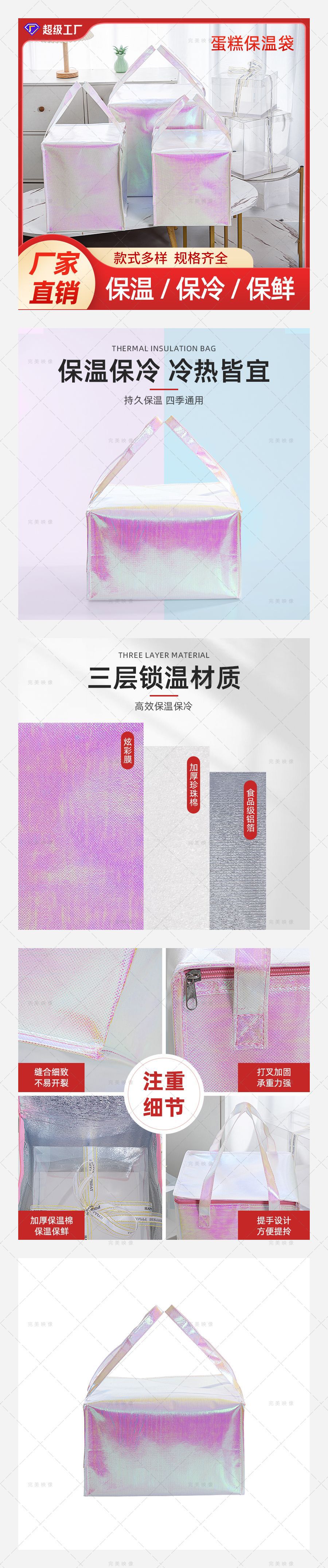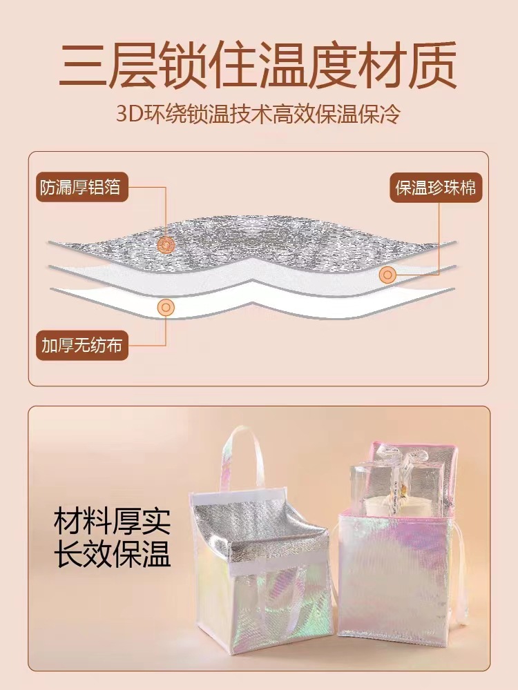두꺼운 고급형 다채로운 케이크 보온 가방 무지개 대형 생일 케이크 테이크아웃 즉시 배송 아이스크림 도매 로고