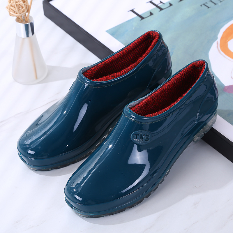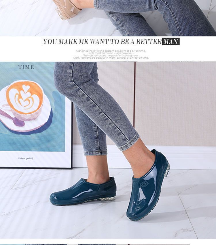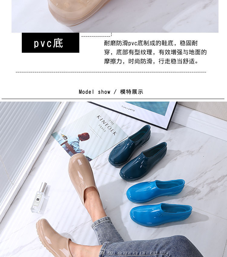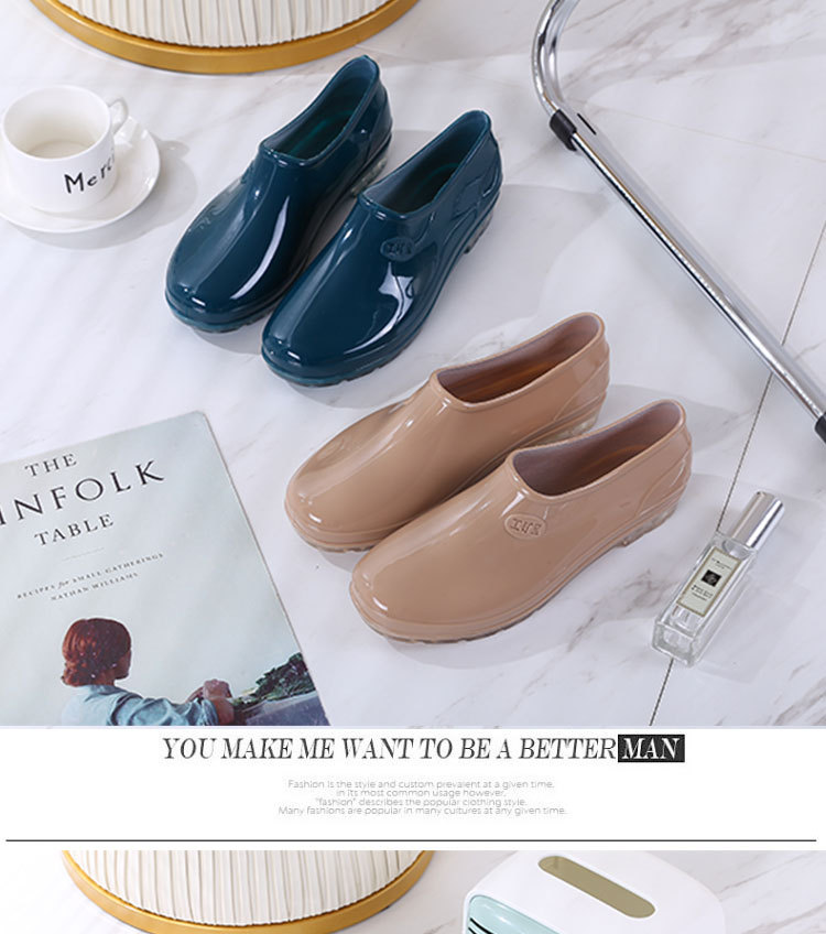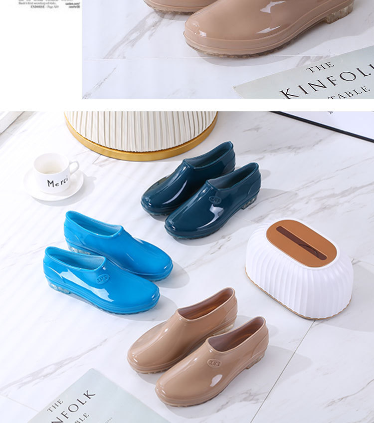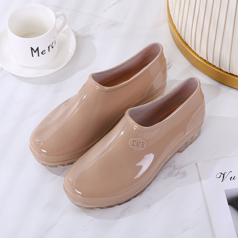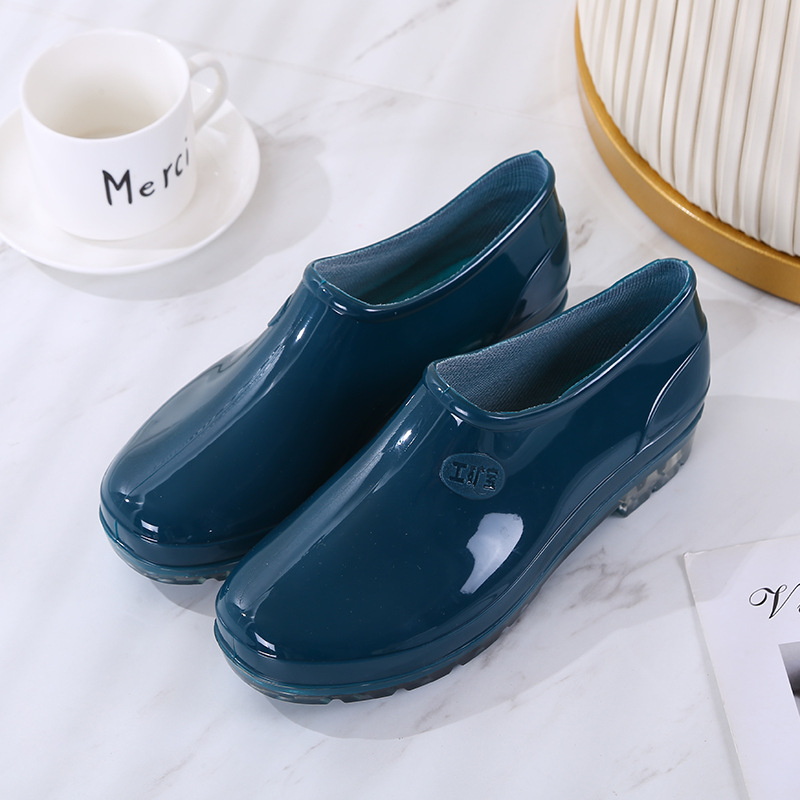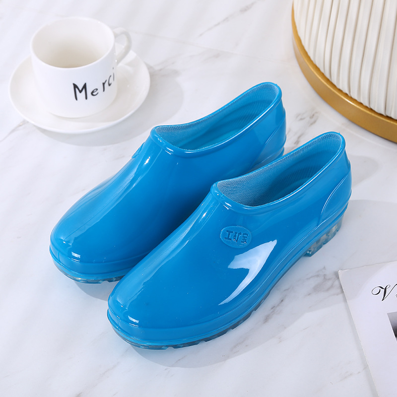 패션 로우 탑 레인 부츠 여성용 겉옷 미끄럼 방지 장화 도매 얕은 입 방수 신발 고무 신발 성인 물 부츠 주방 여름