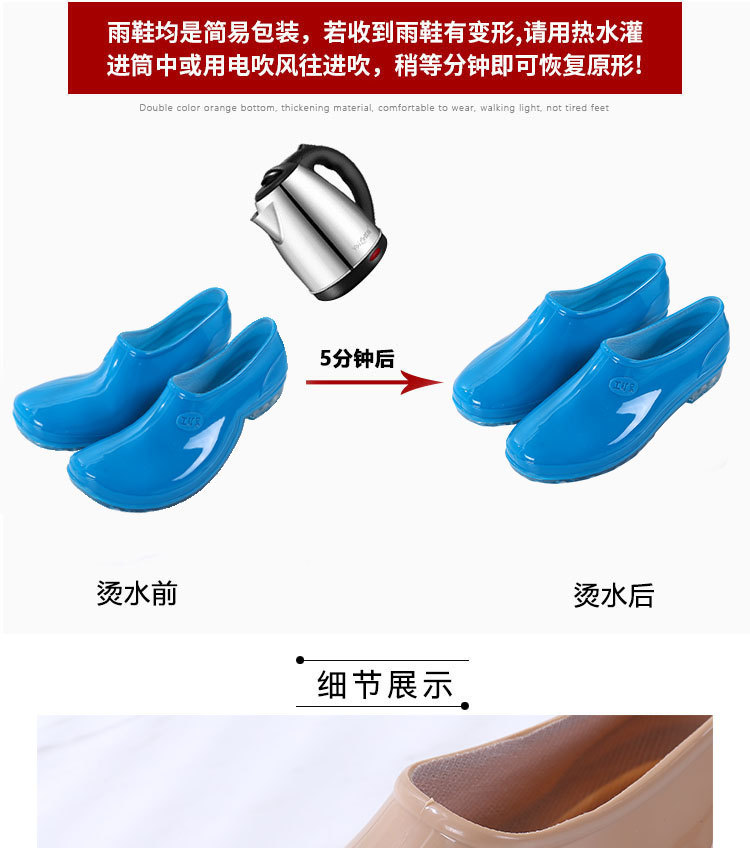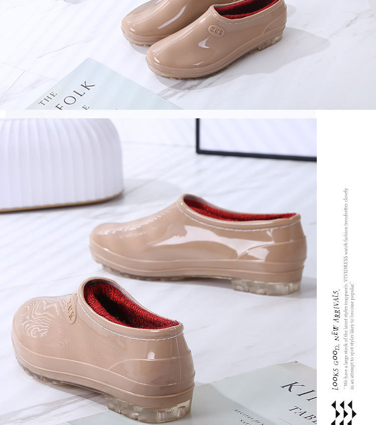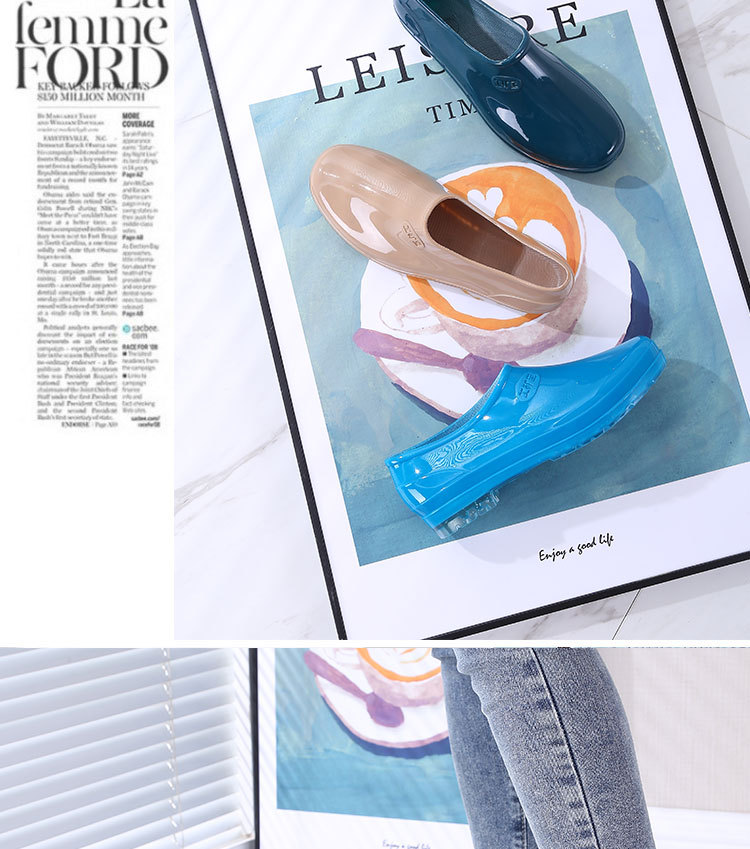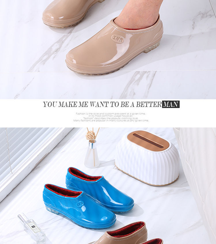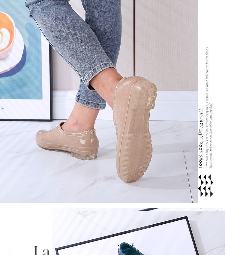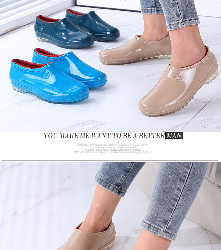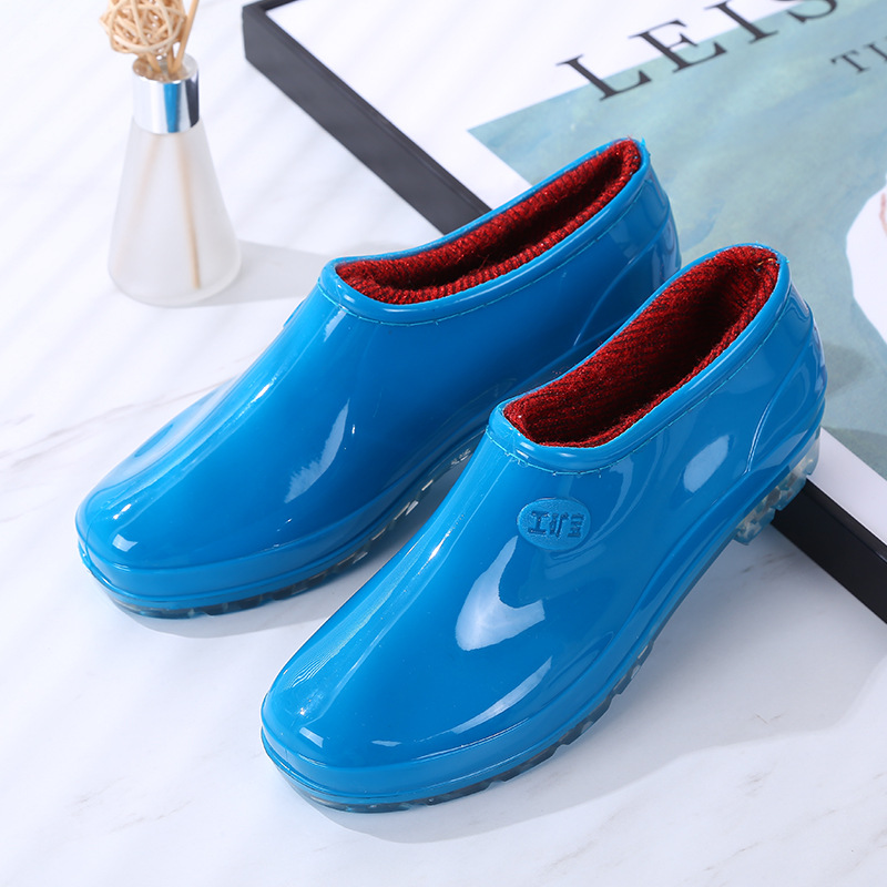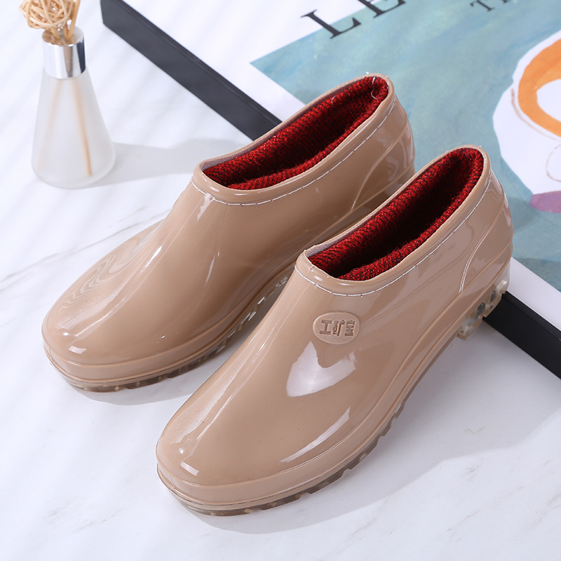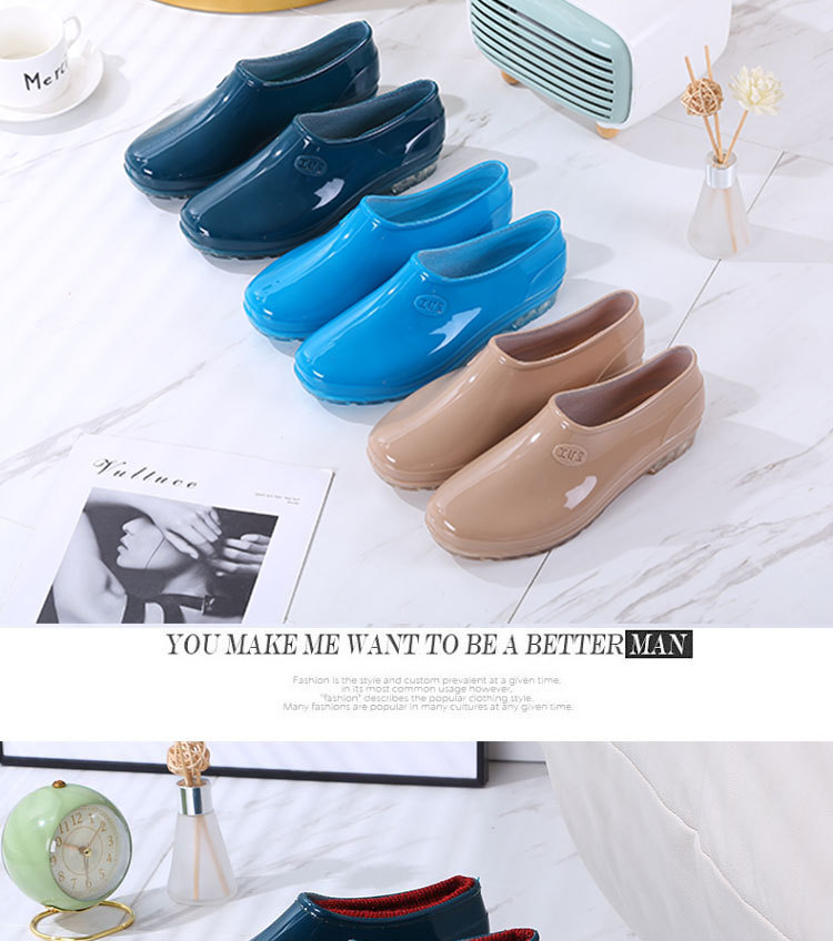 패션 로우 탑 레인 부츠 여성용 겉옷 미끄럼 방지 장화 도매 얕은 입 방수 신발 고무 신발 성인 물 부츠 주방 여름