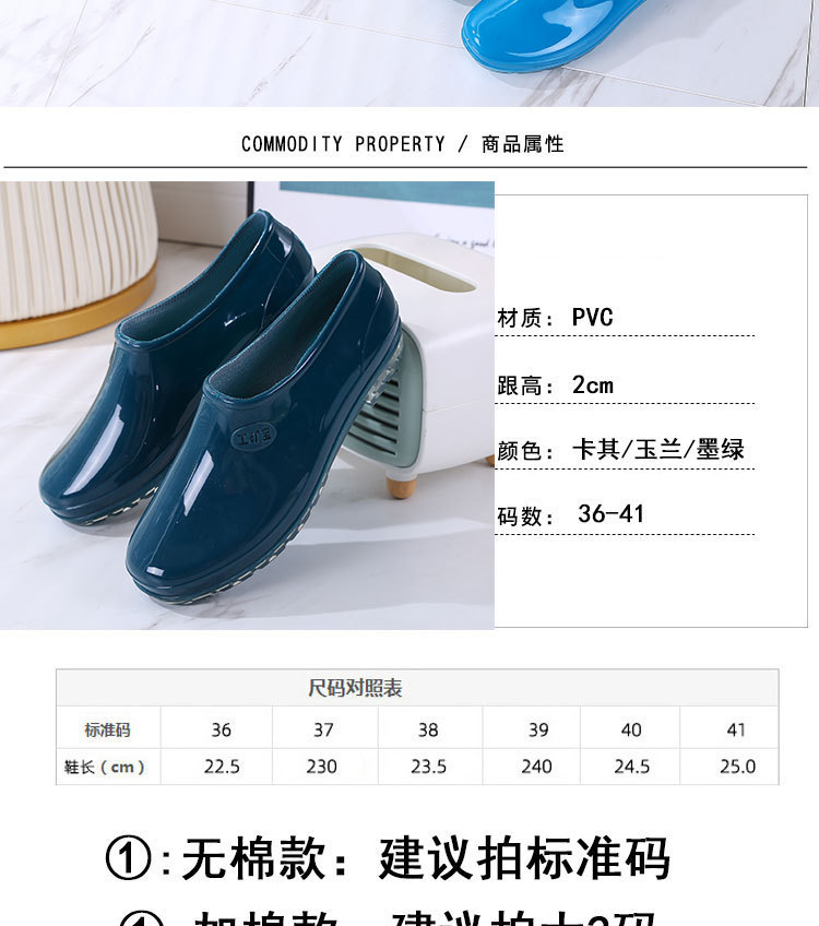 패션 로우 탑 레인 부츠 여성용 겉옷 미끄럼 방지 장화 도매 얕은 입 방수 신발 고무 신발 성인 물 부츠 주방 여름스토어 가기