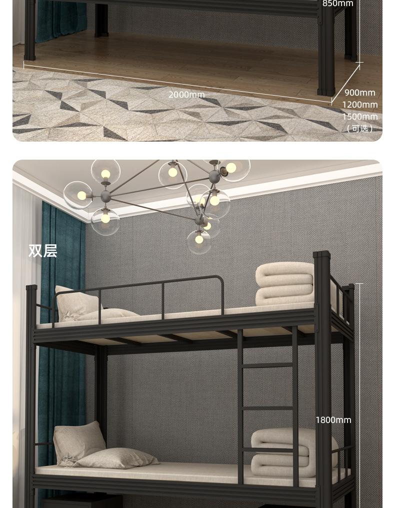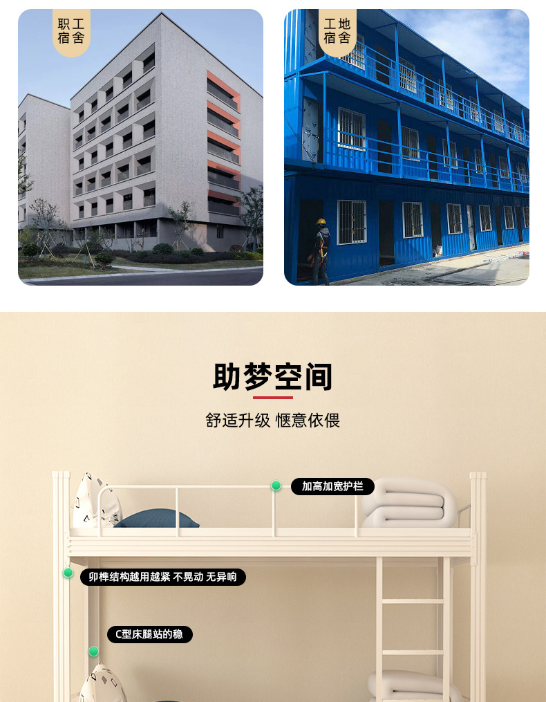 이층 침대, 학교용 이층 철제 침대, 직원 기숙사용 철제 침대, 건설 현장용 이층 침대, 두꺼운 구조