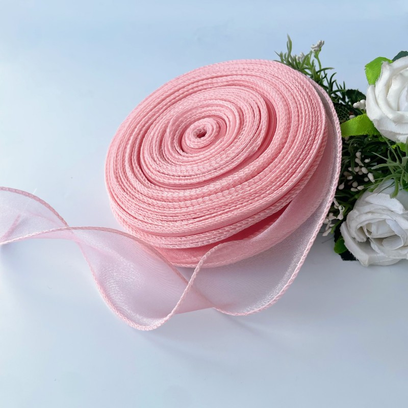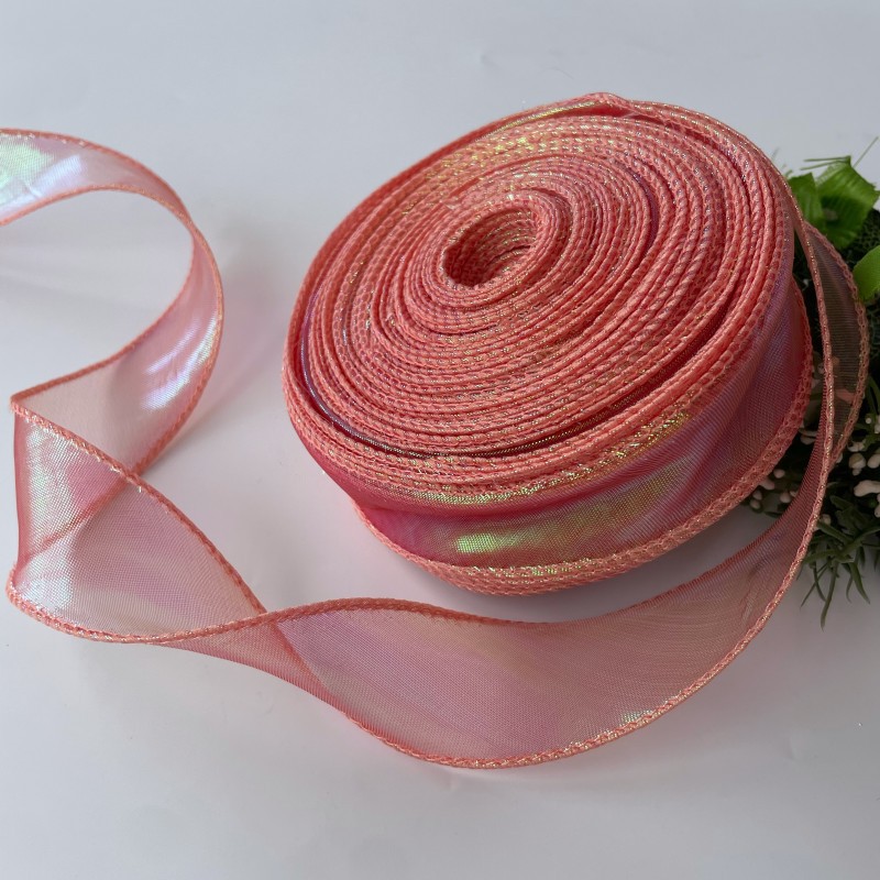 • 금사 자수 물고기 꼬리 쉬폰 ~ 코랄 핑크 4cm * 9m [롤]