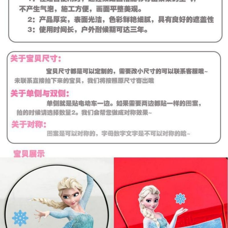 냉동 여왕 아이샤 공주 애니메이션 만화 스크래치 연료 탱크 커버 초보자 도로 백미러 자동차 스티커스토어 가기