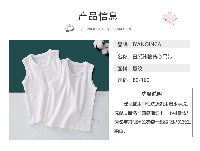 升级款纯白净版男女童背心吊带衫