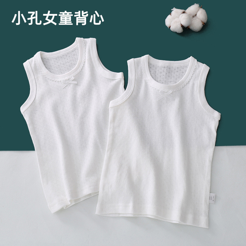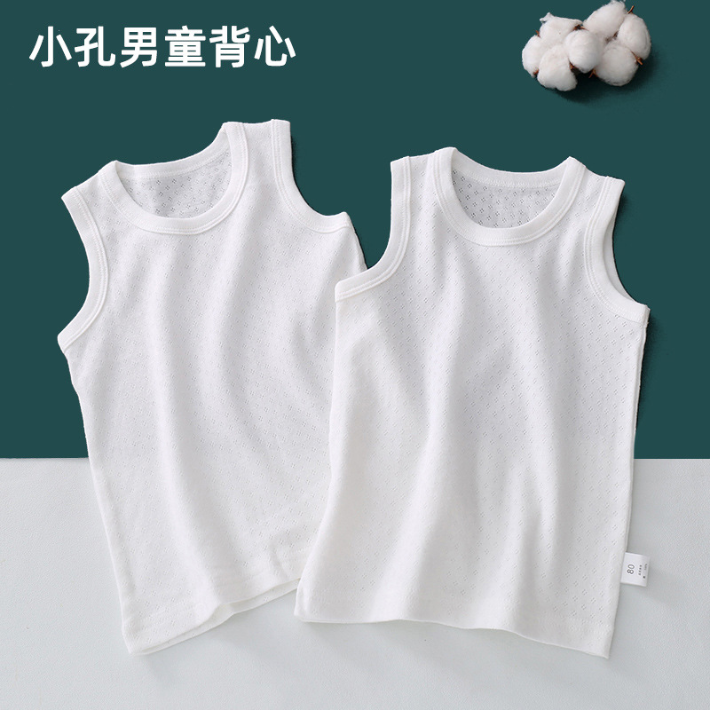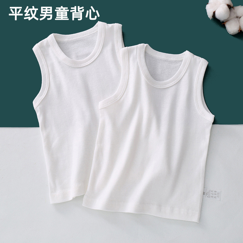 대형 및 중형 어린이를위한 일본식 여름 얇은 탑 순면 클래스 소년과 소녀를위한 순수한 흰색 순수 버전 조끼 슬링 베이스 셔츠