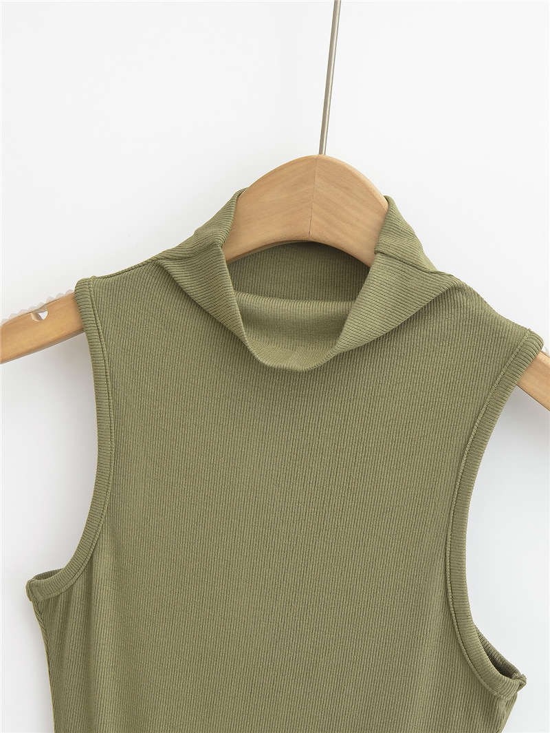 Pure Desire 스타일 하이 칼라 민소매 원피스 조끼 여름 새로운 유행 모든 매치 슬림 핏 슬리밍 스파이스 걸스 베이스 탑 여성