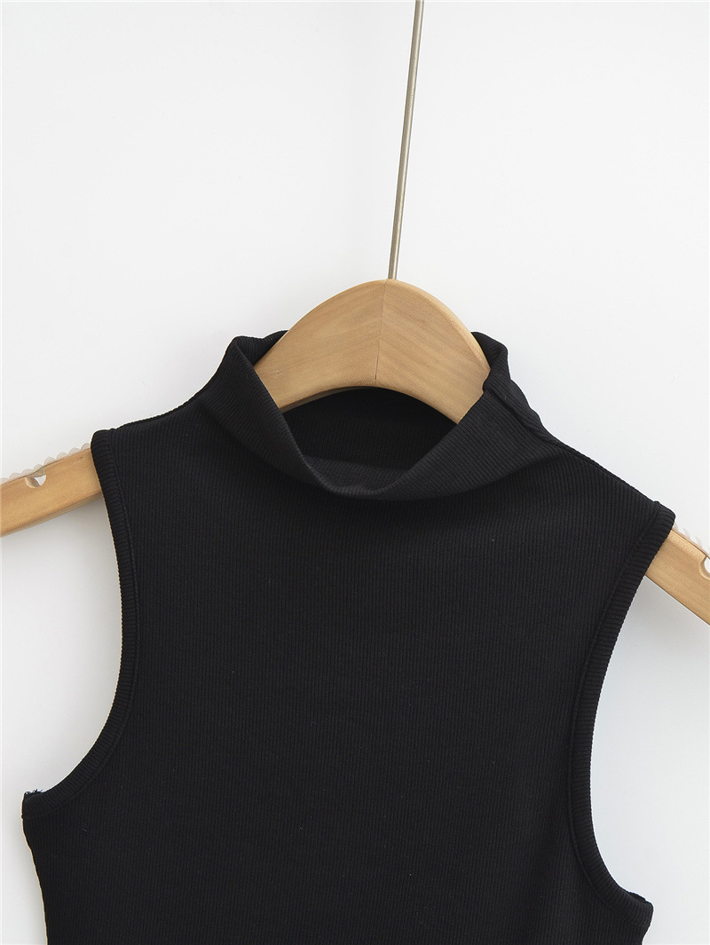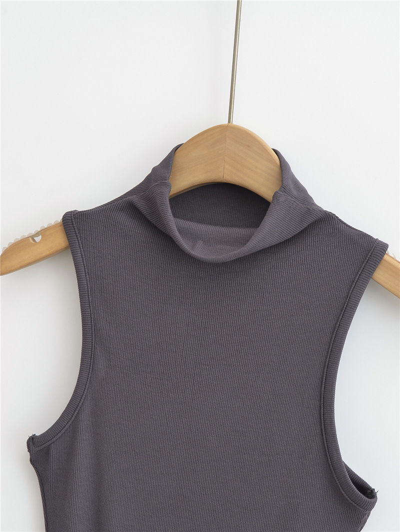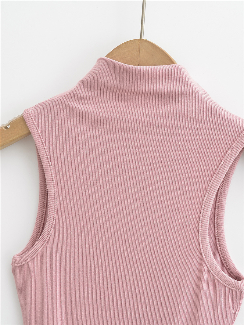 Pure Desire 스타일 하이 칼라 민소매 원피스 조끼 여름 새로운 유행 모든 매치 슬림 핏 슬리밍 스파이스 걸스 베이스 탑 여성스토어 가기
