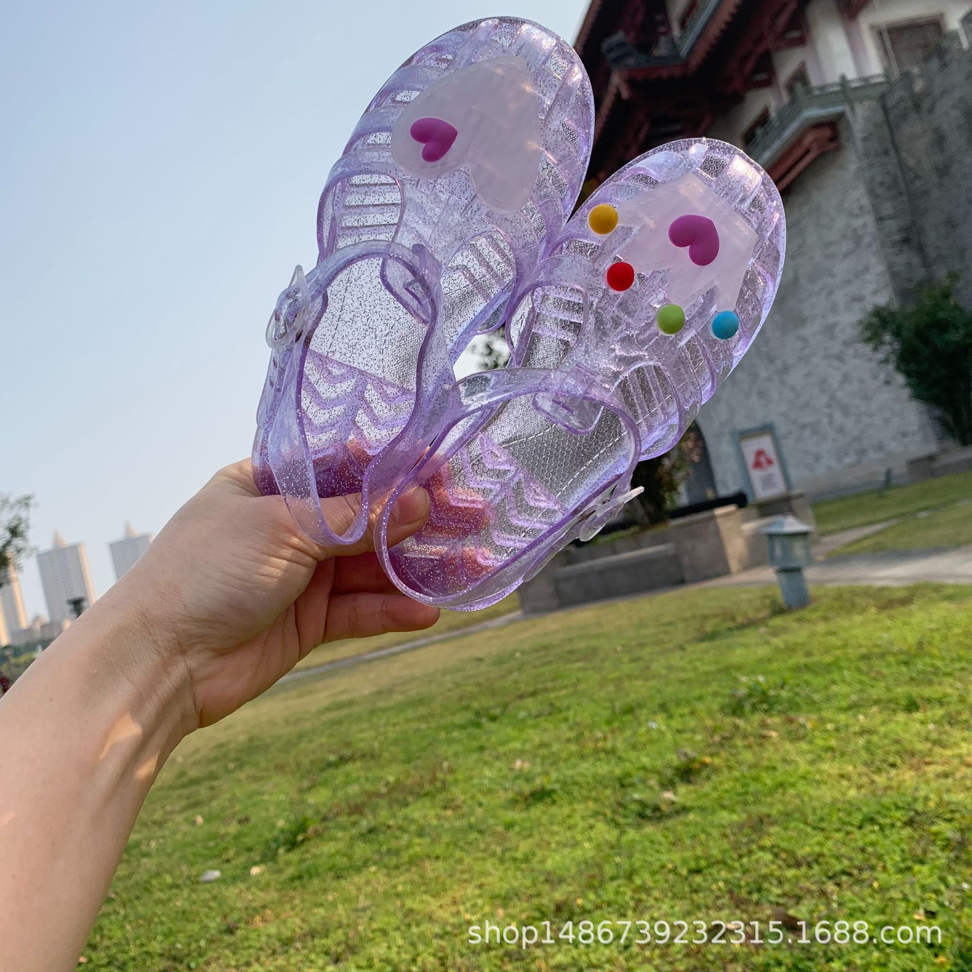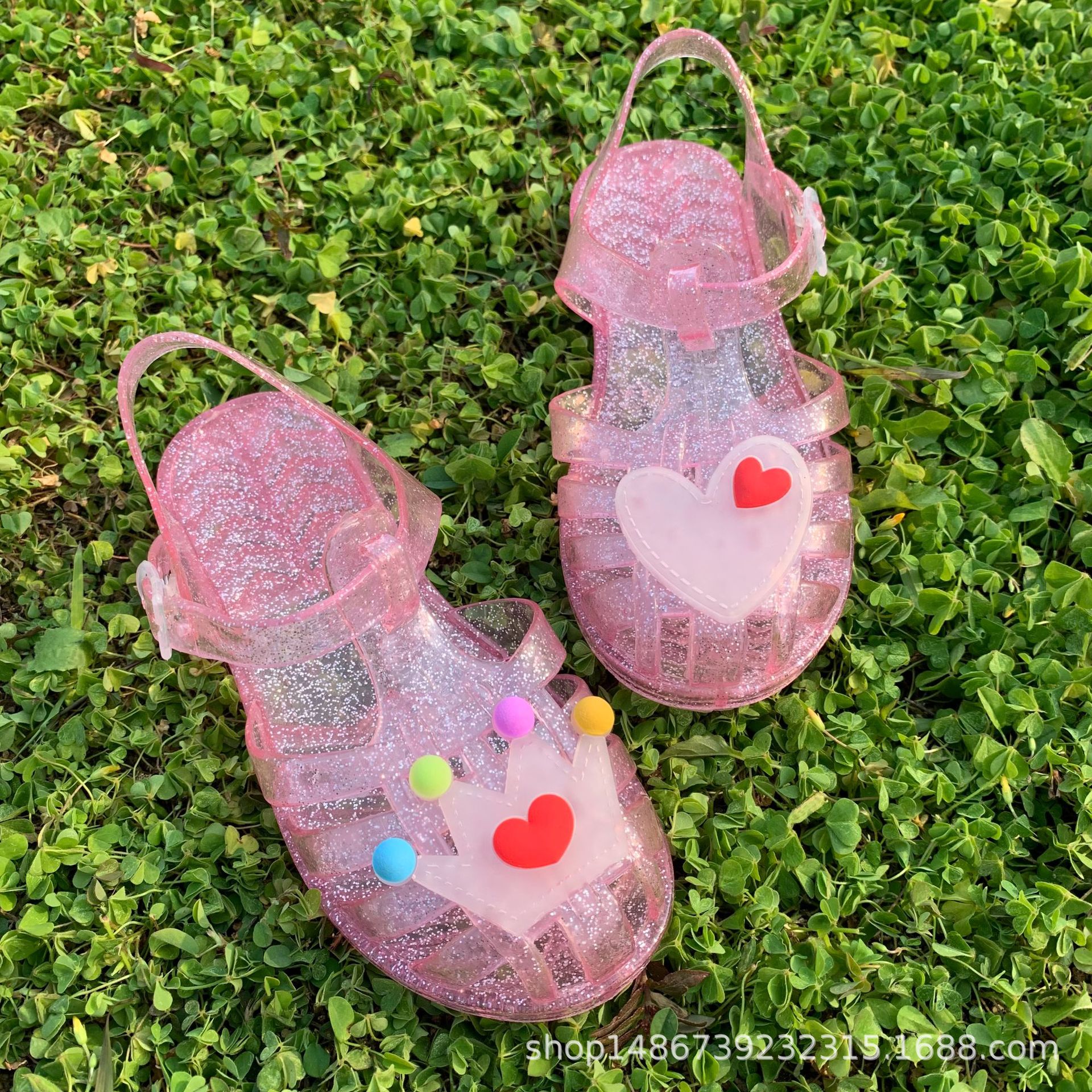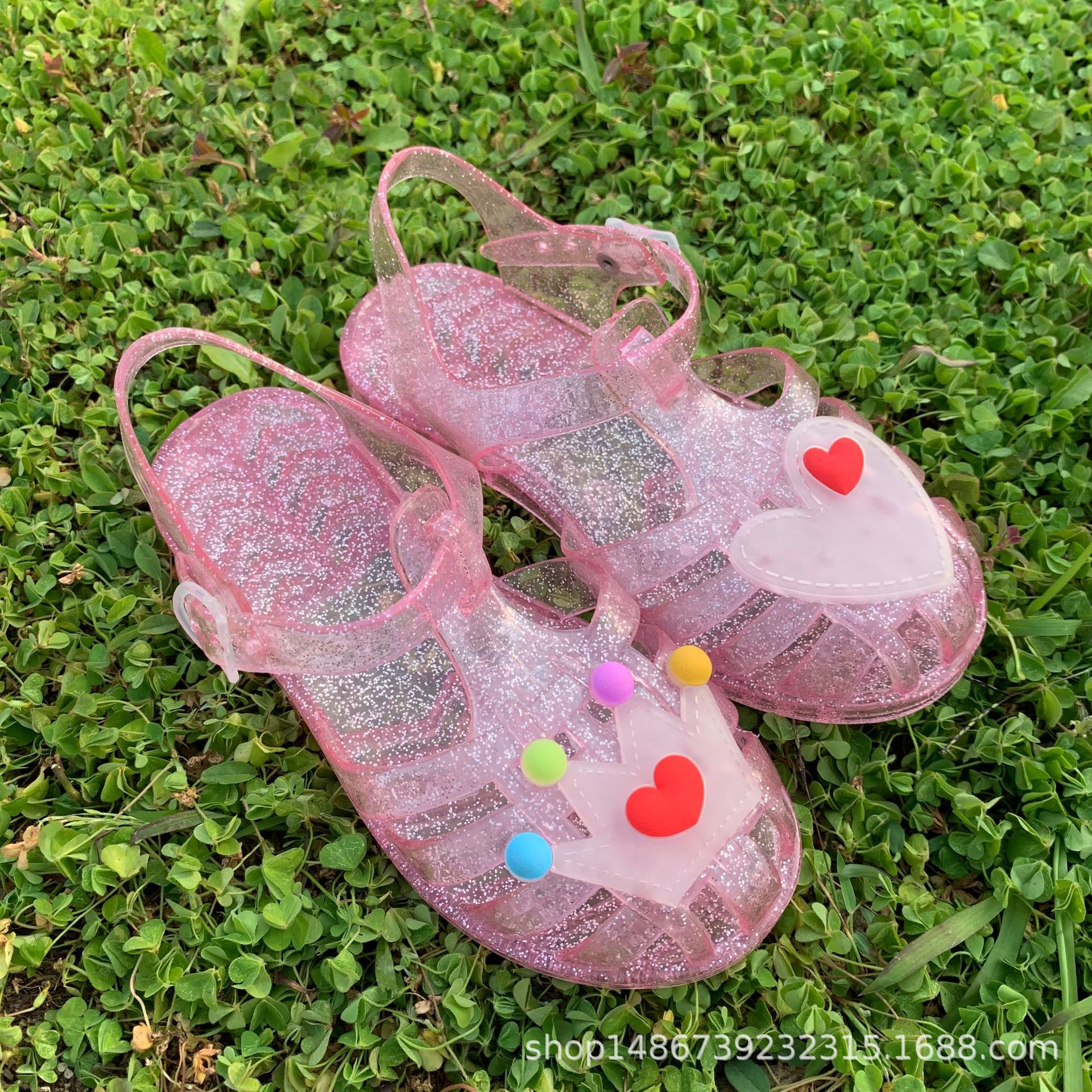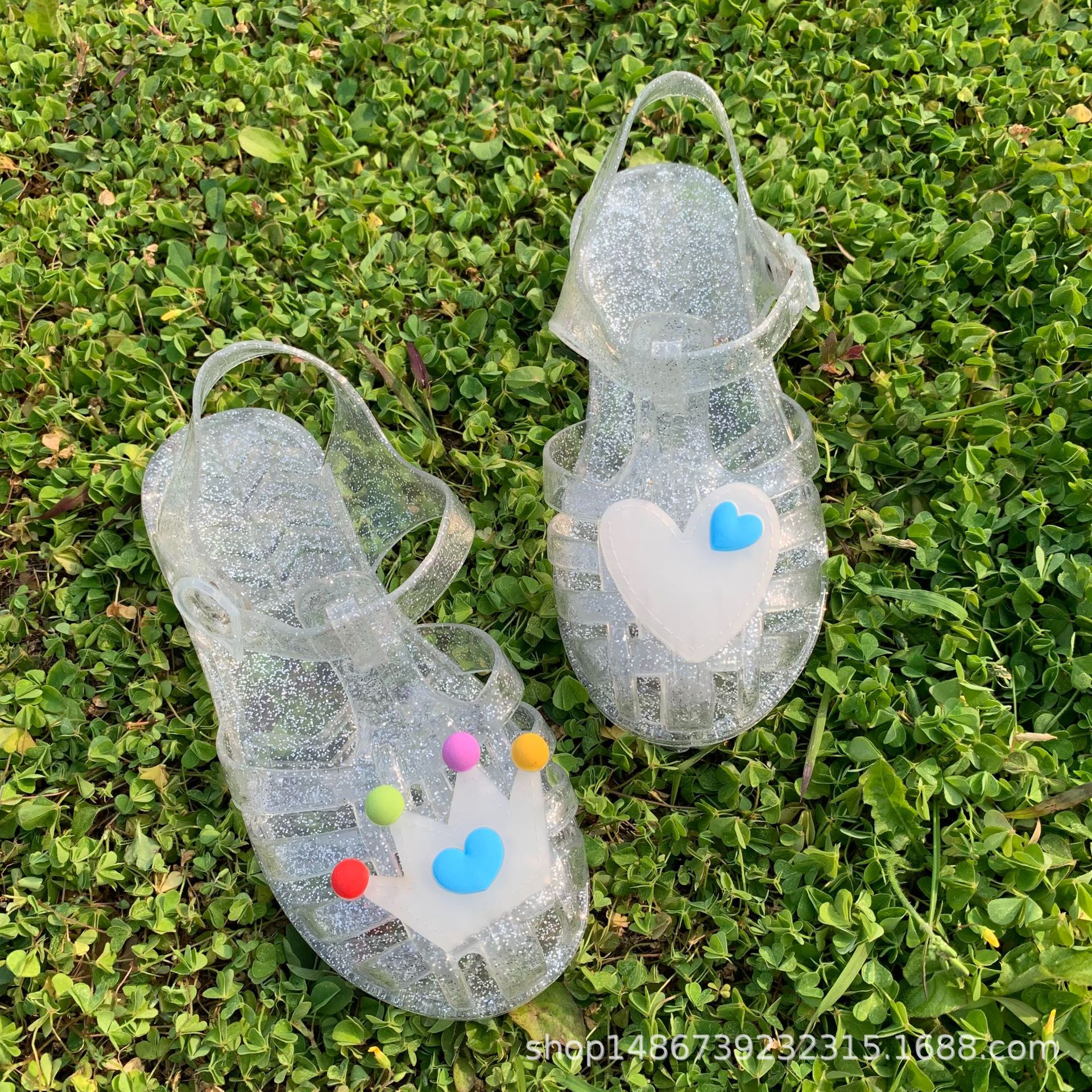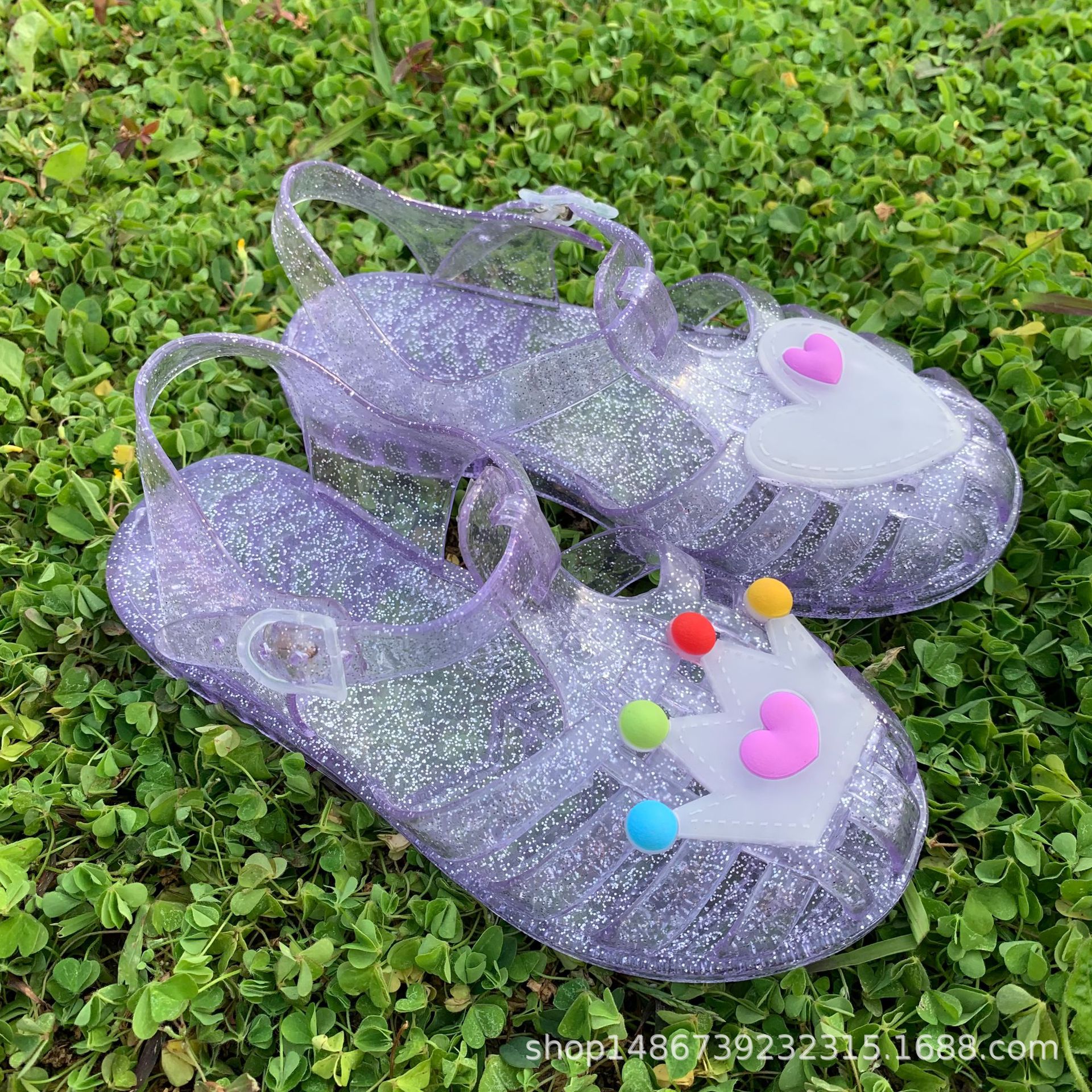 어린이 신발 아기 샌들 젤리 신발 부드러운 바닥 PVC 비치 신발 공주 크리스탈 신발 도매