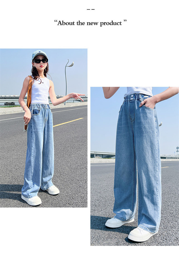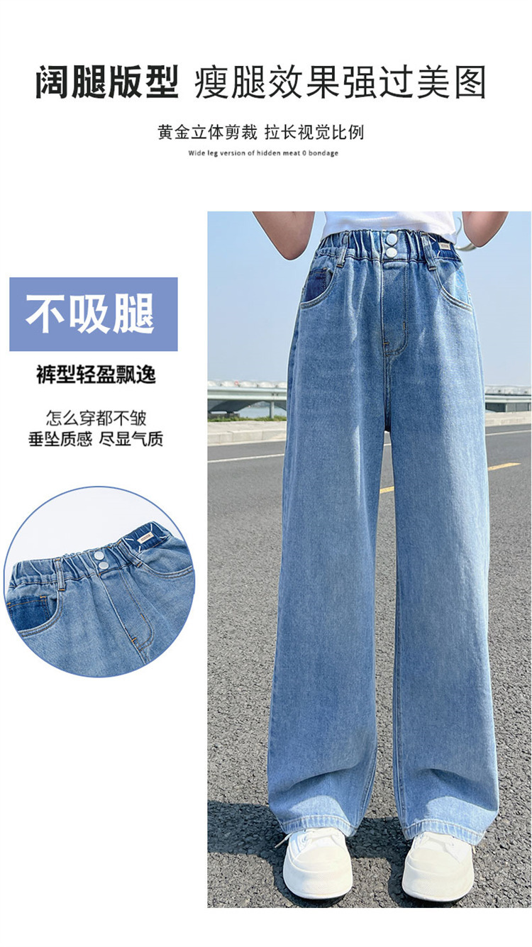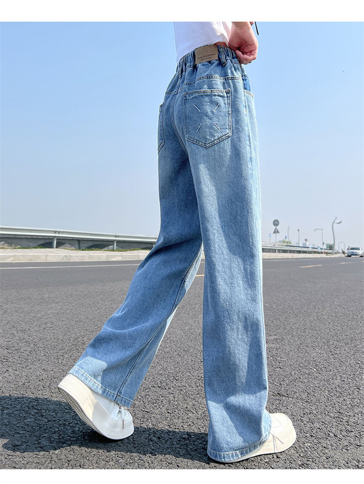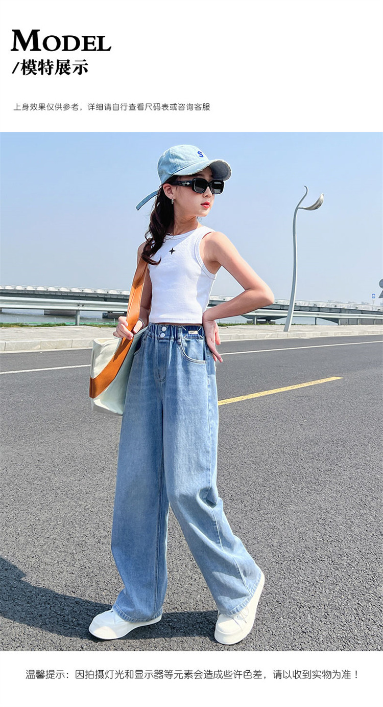 여아 청바지 여름 2023 새로운 모기 방지 바지 어린이 여름 와이드 팬츠 여성용 큰 어린이 스트레이트 팬츠 얇은스토어 가기
