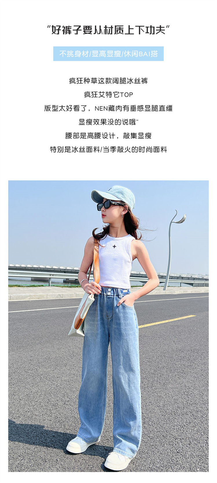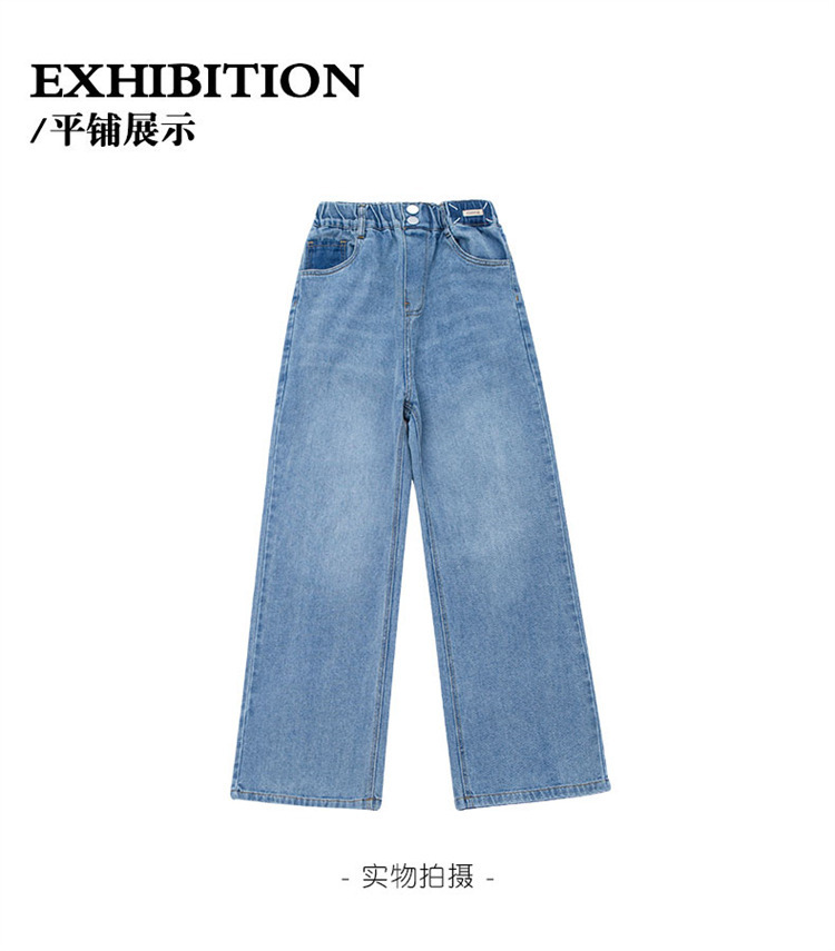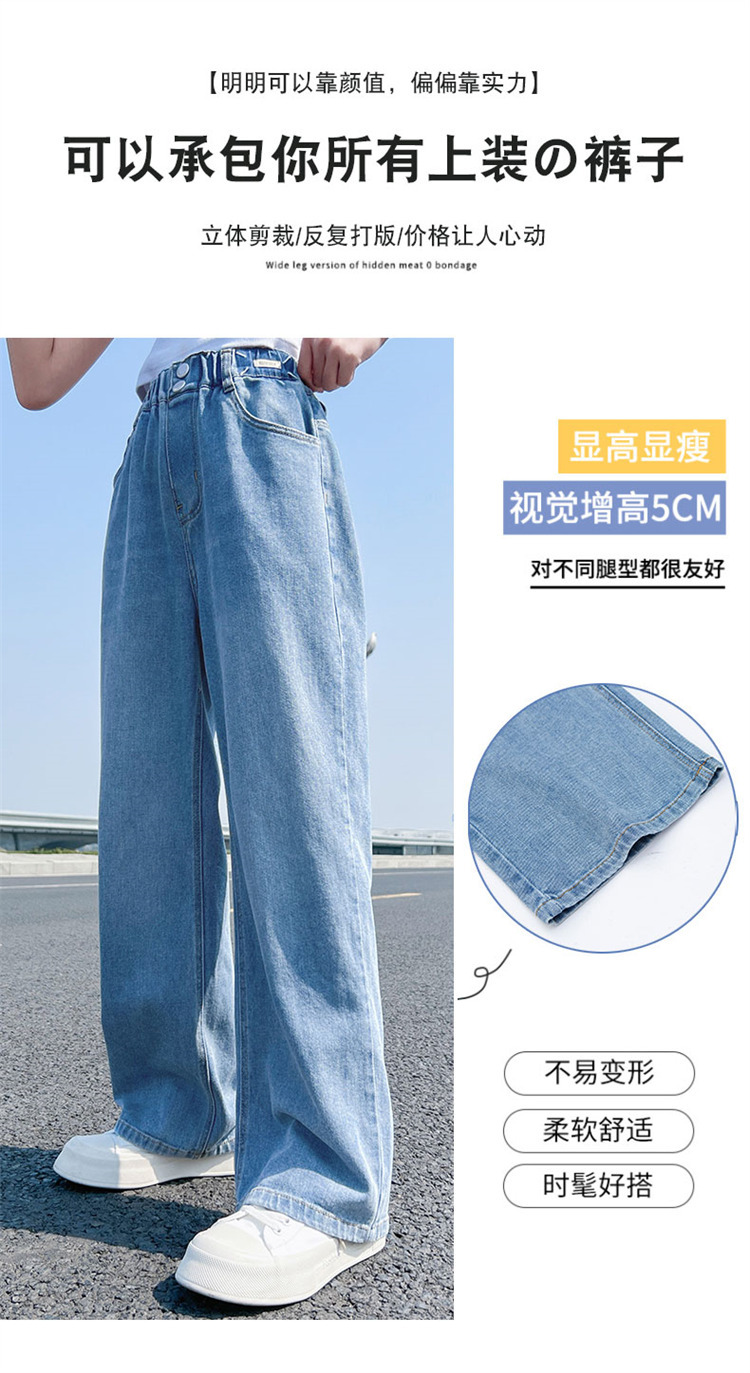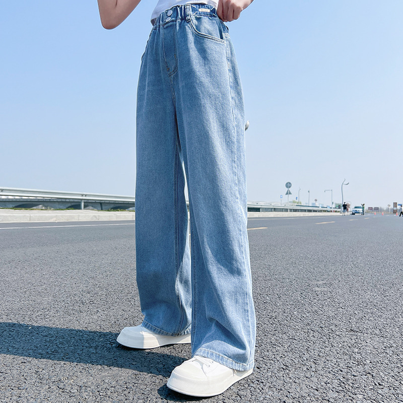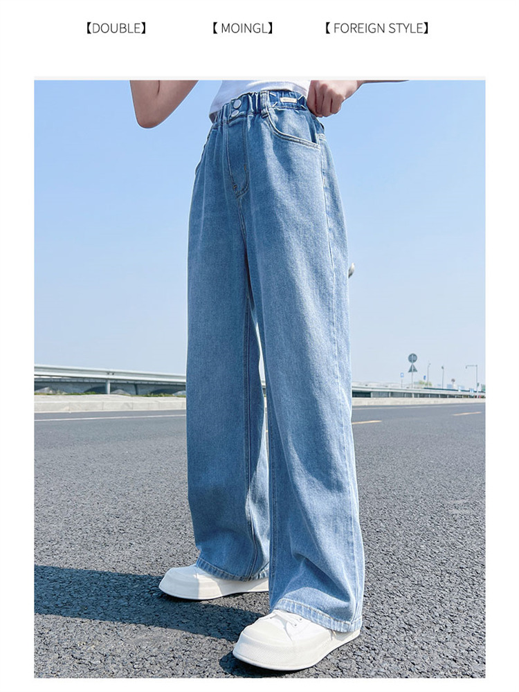 여아 청바지 여름 2023 새로운 모기 방지 바지 어린이 여름 와이드 팬츠 여성용 큰 어린이 스트레이트 팬츠 얇은스토어 가기
