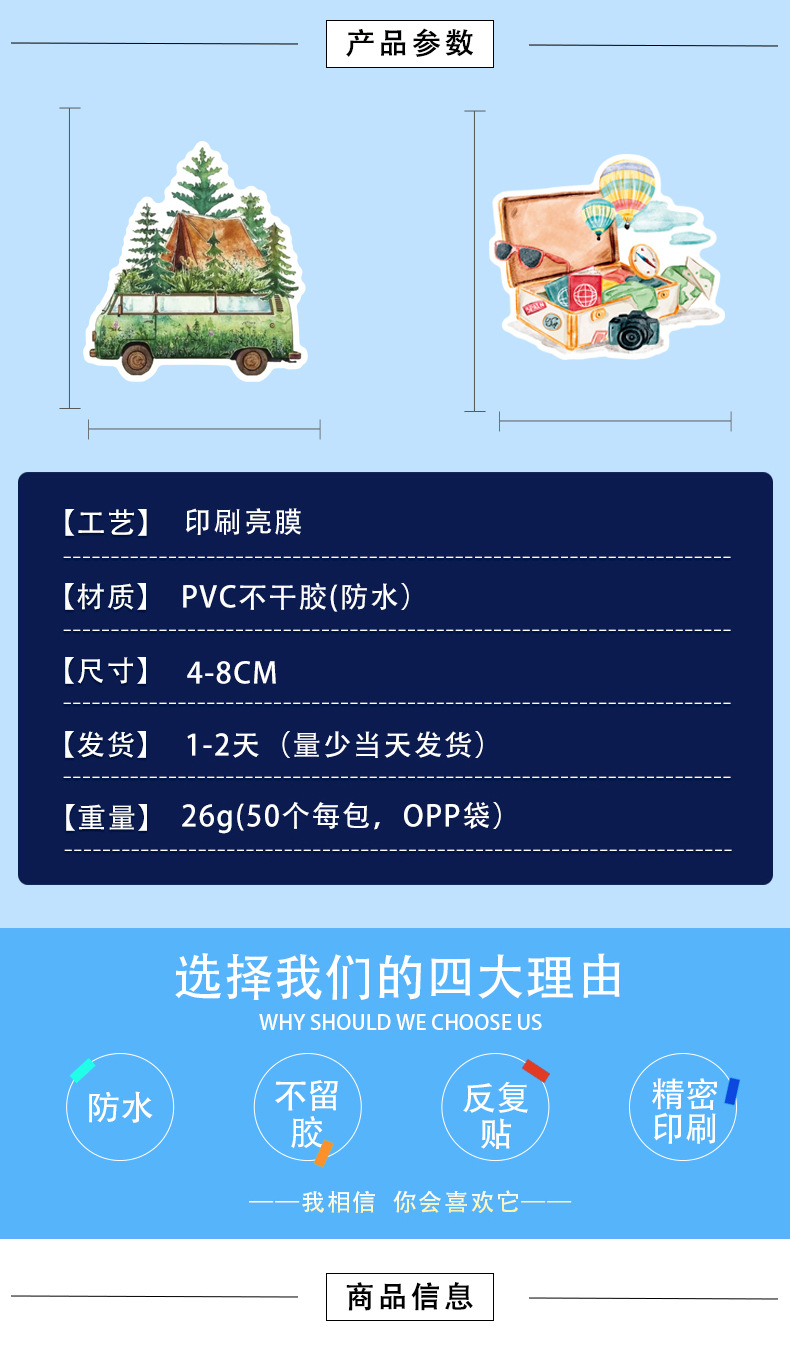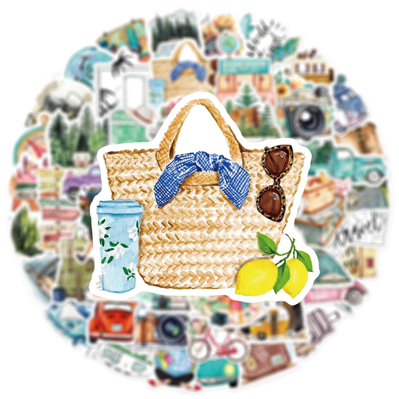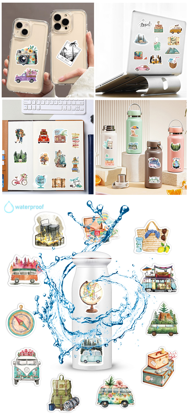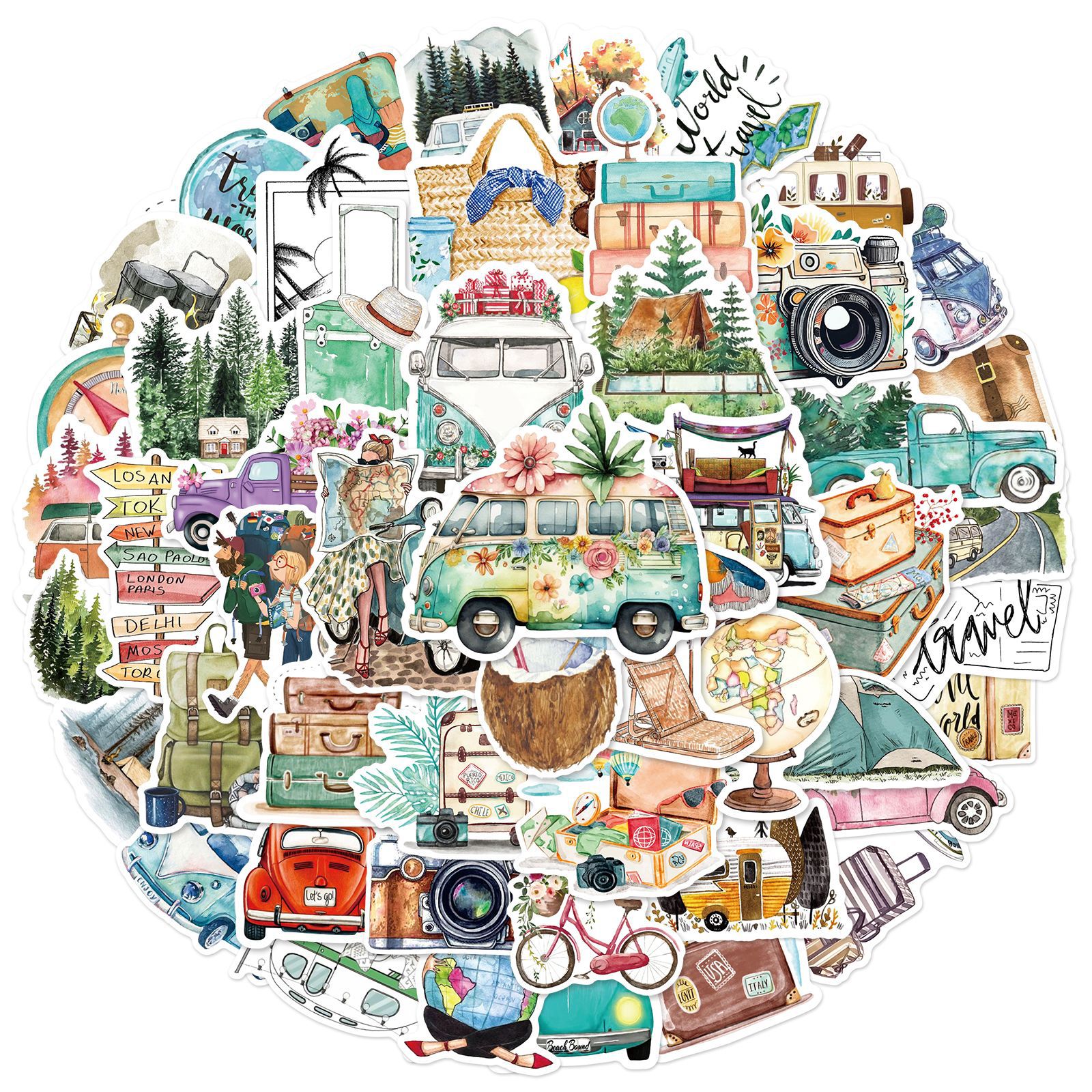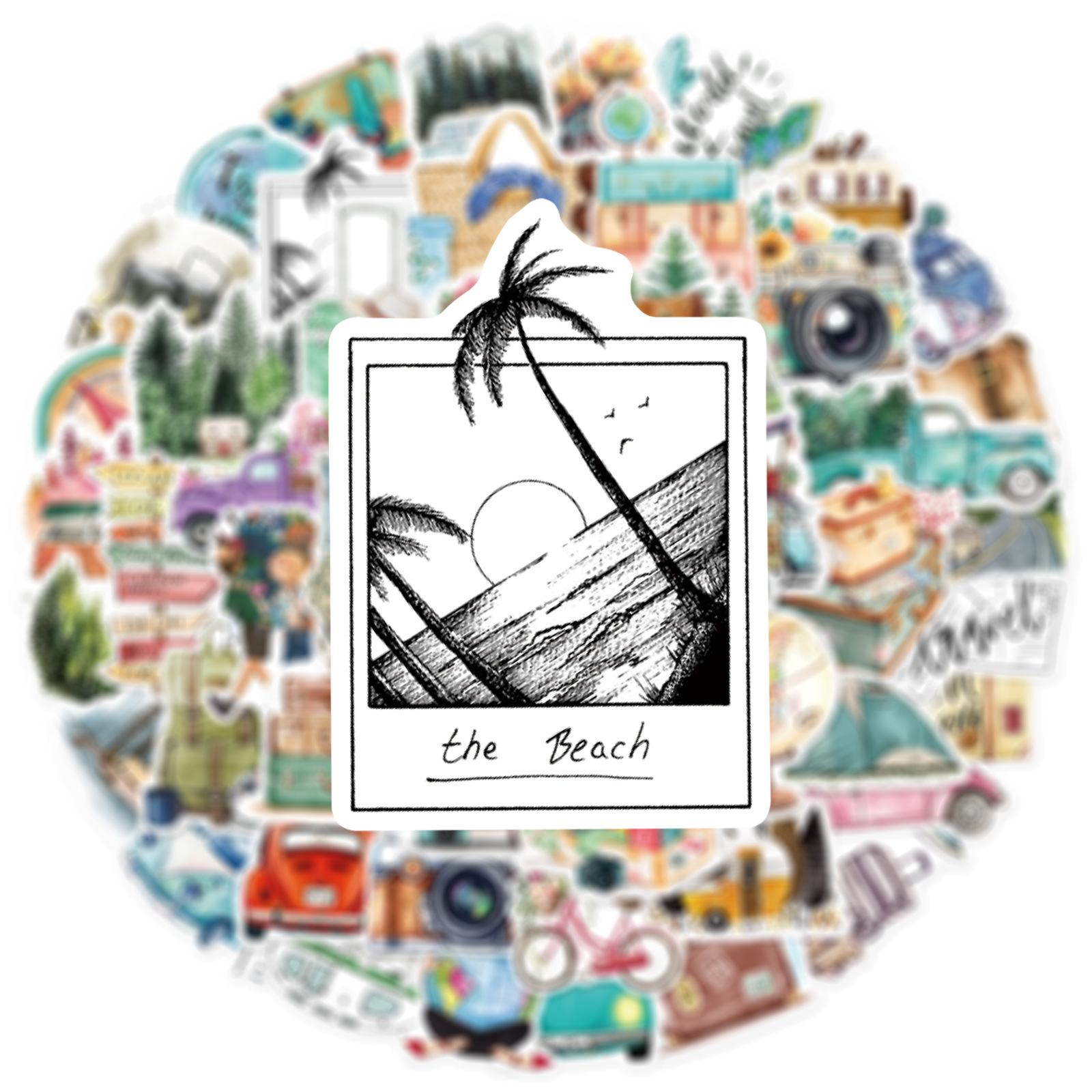 50 새로운 야외 여행 낙서 스티커 수하물 보관 상자 물 컵 방수 플랫 기타 PVC 스티커