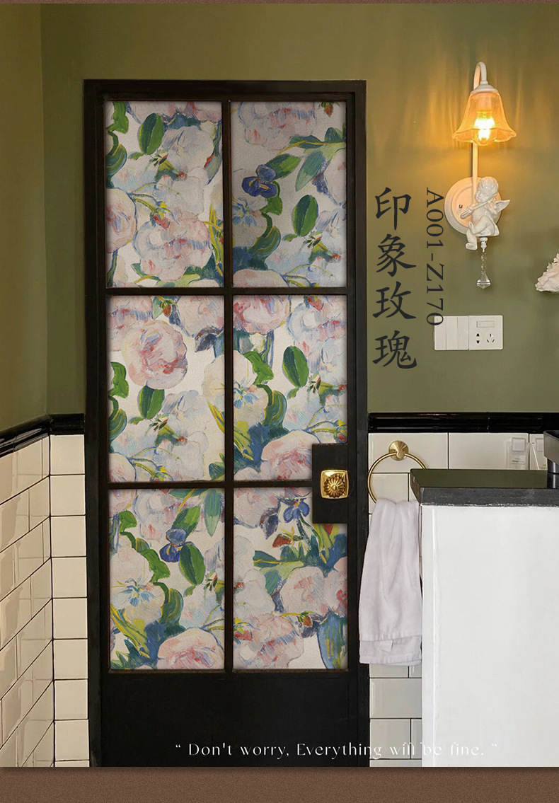 반 고흐 창 종이 욕실 유리 스티커 화장실 문 창 스티커 안티 광 투과 불투명