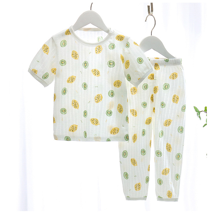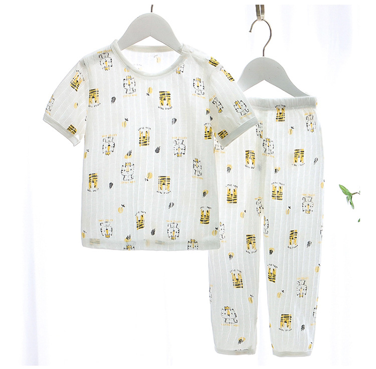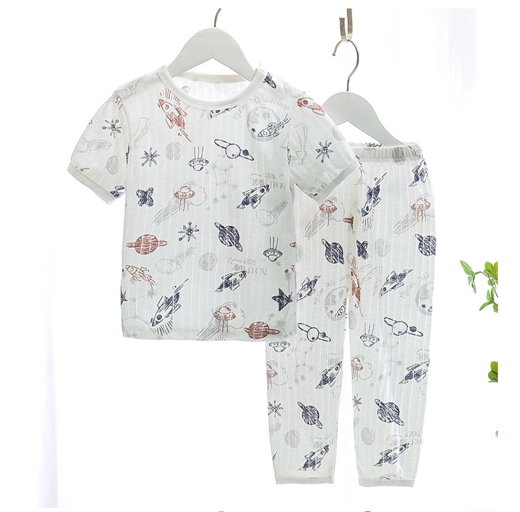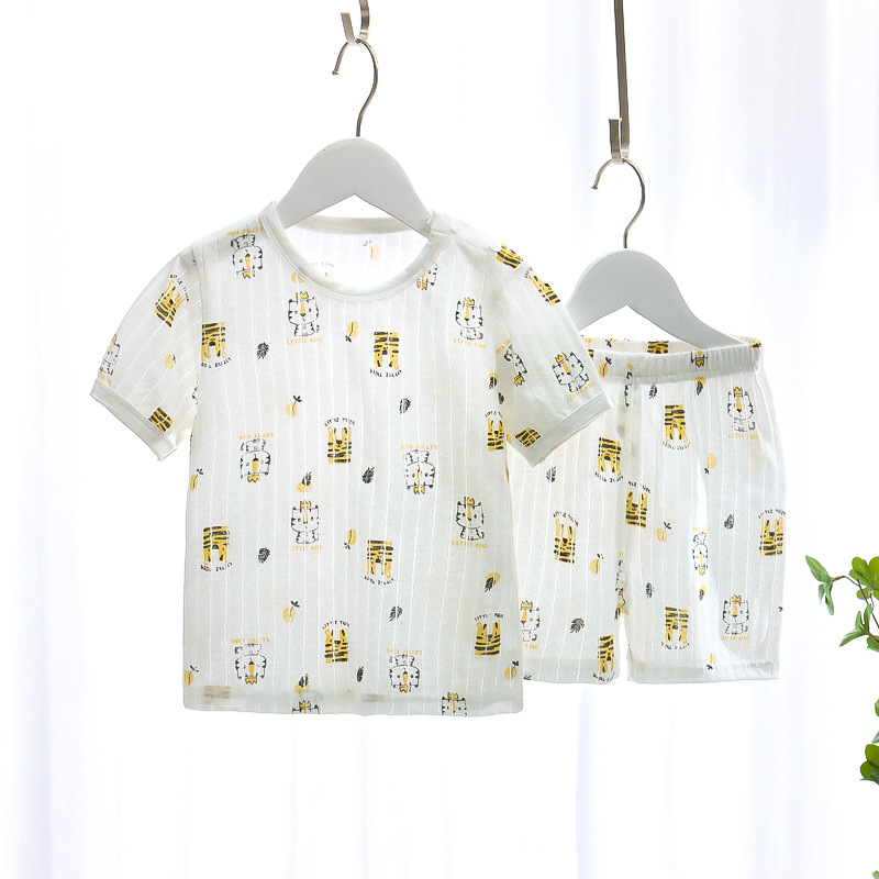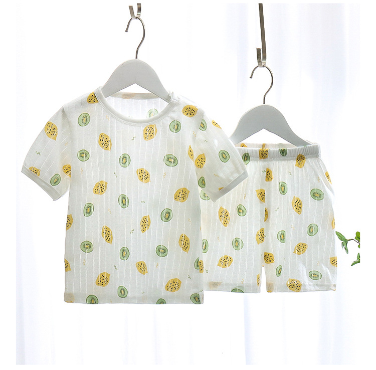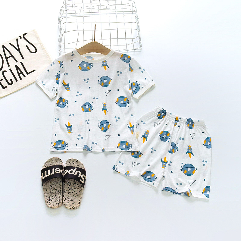 BB145 어린이 면 반팔 반바지 세트 어린이 잠옷 남아 가정복 여아 반팔 투피스 세트스토어 가기