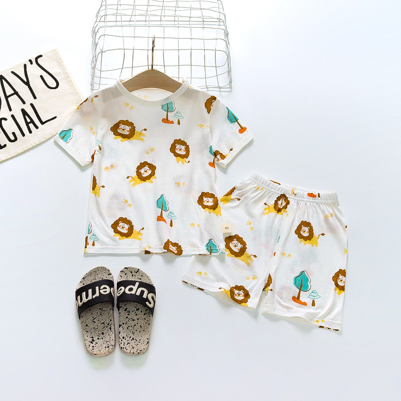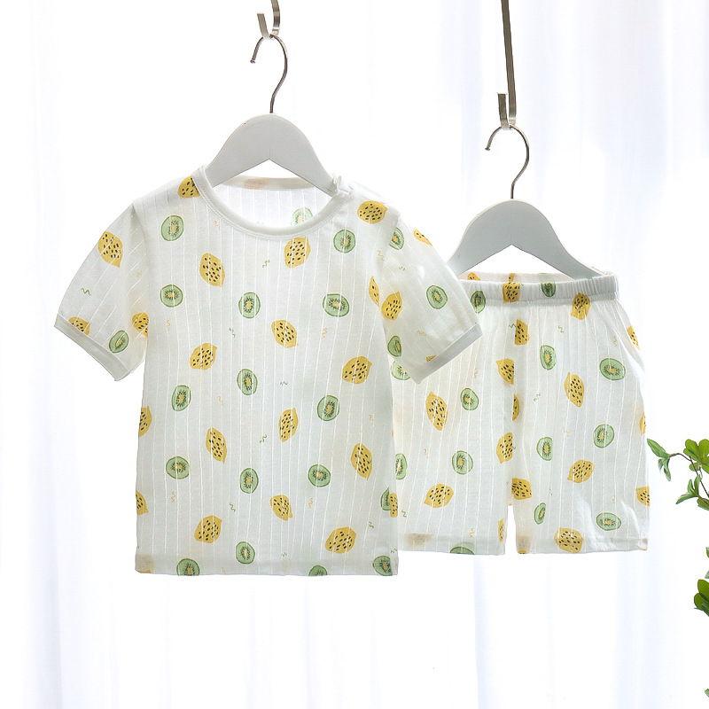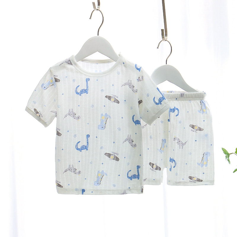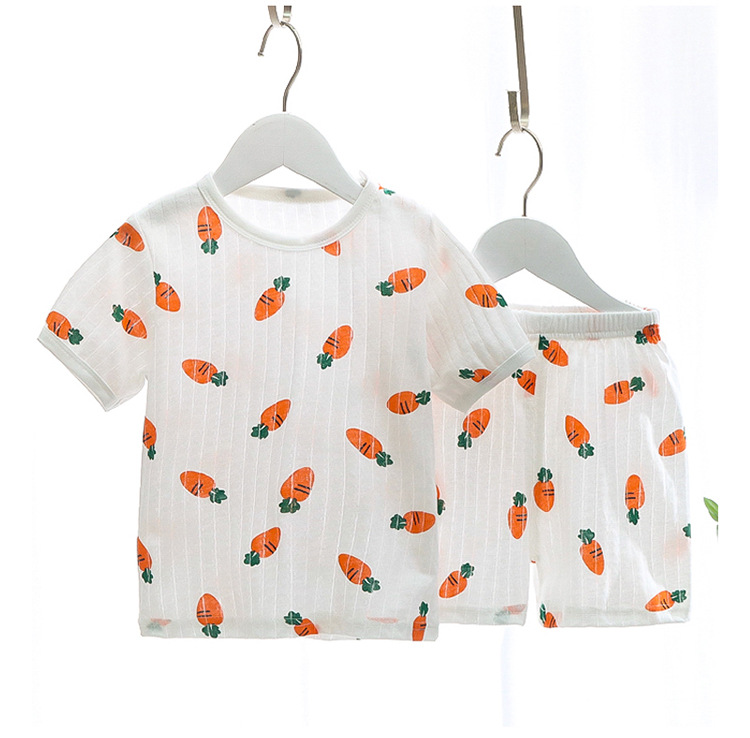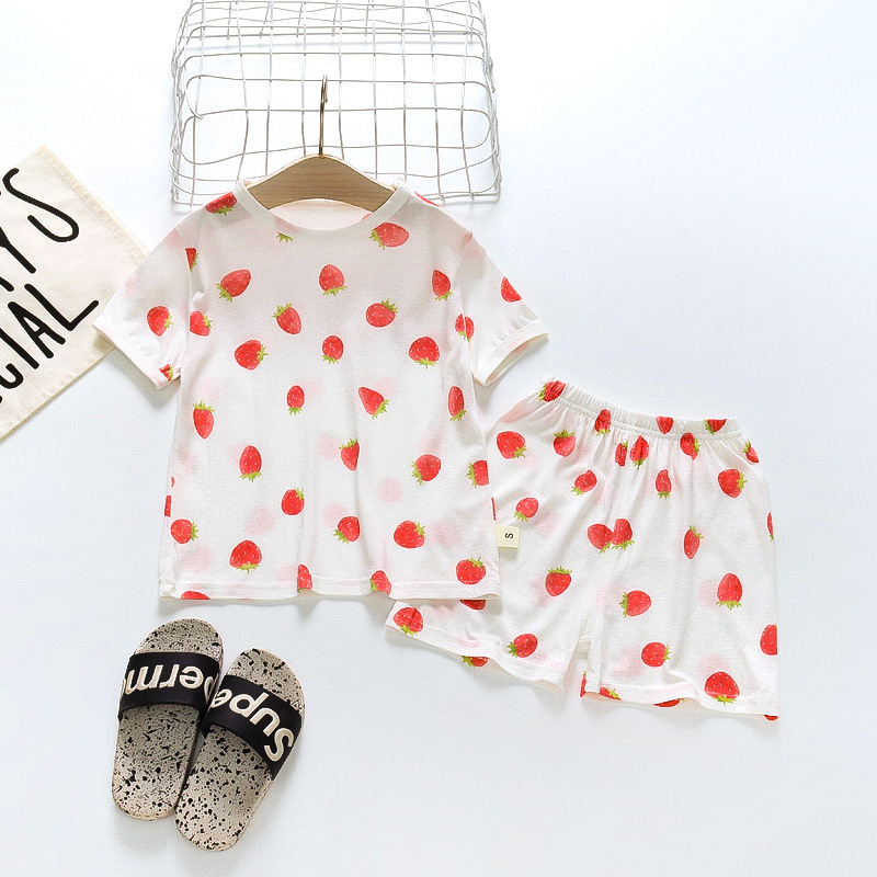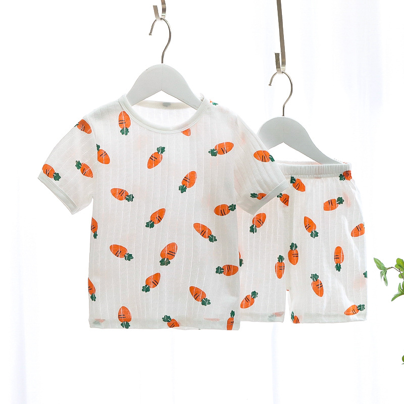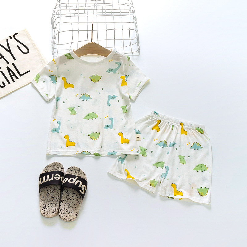 BB145 어린이 면 반팔 반바지 세트 어린이 잠옷 남아 가정복 여아 반팔 투피스 세트