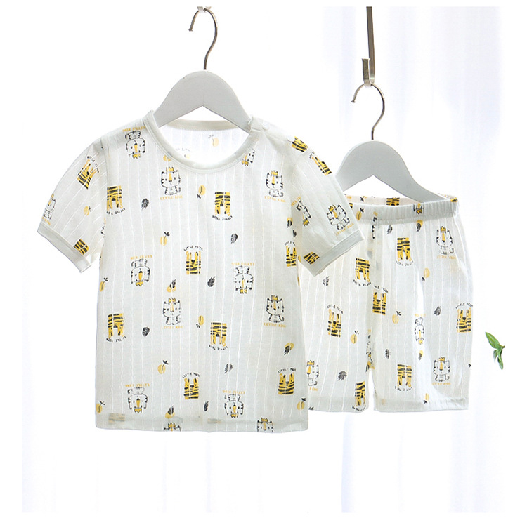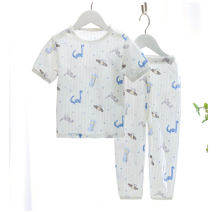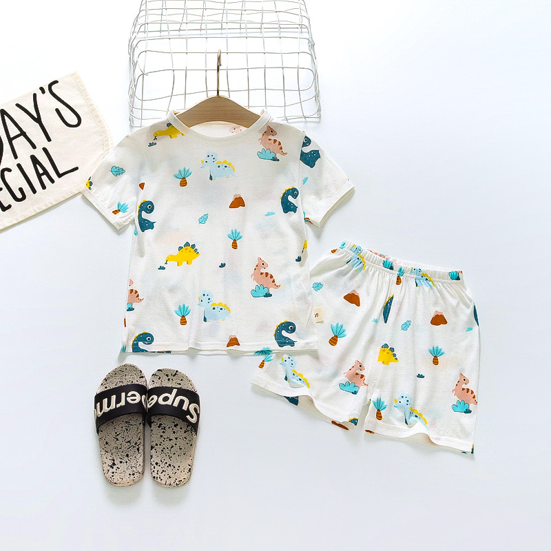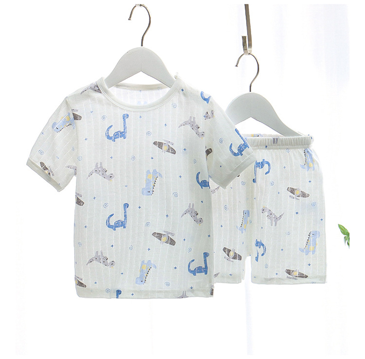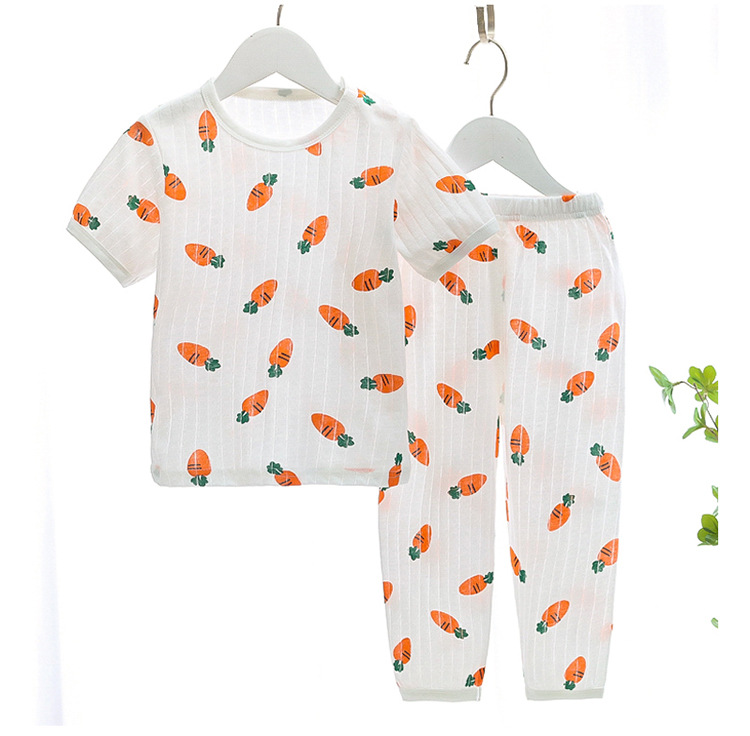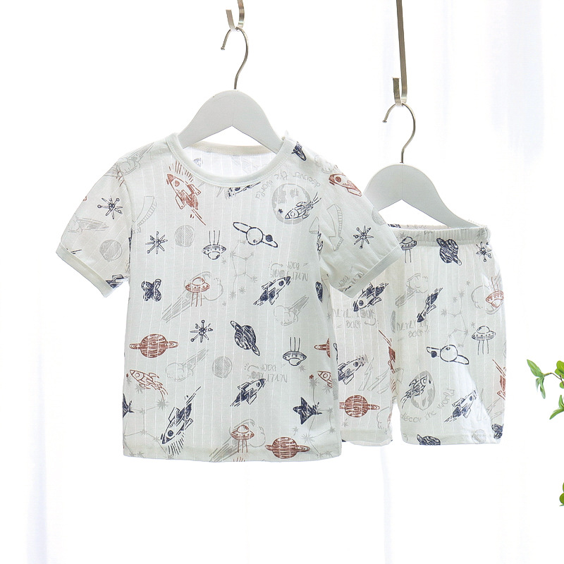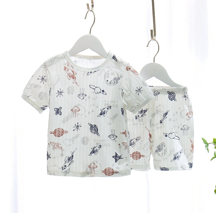 BB145 어린이 면 반팔 반바지 세트 어린이 잠옷 남아 가정복 여아 반팔 투피스 세트