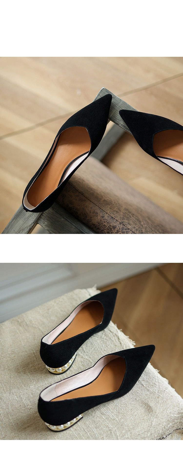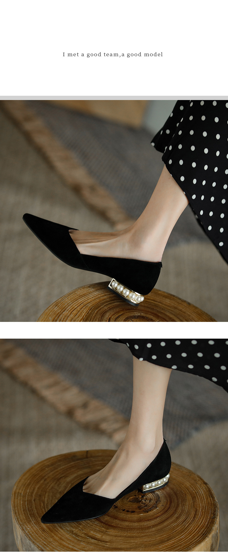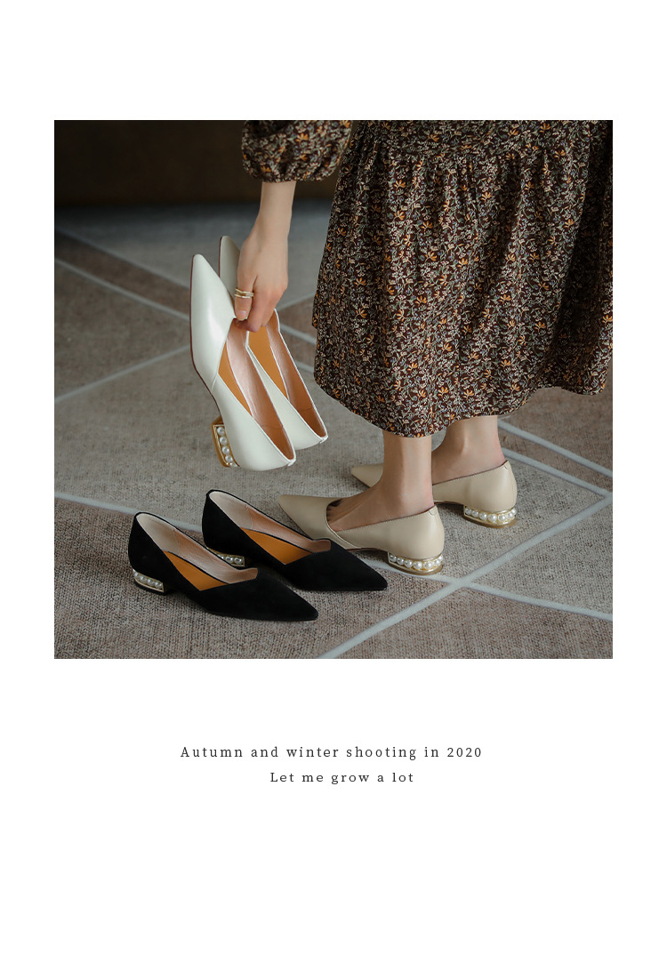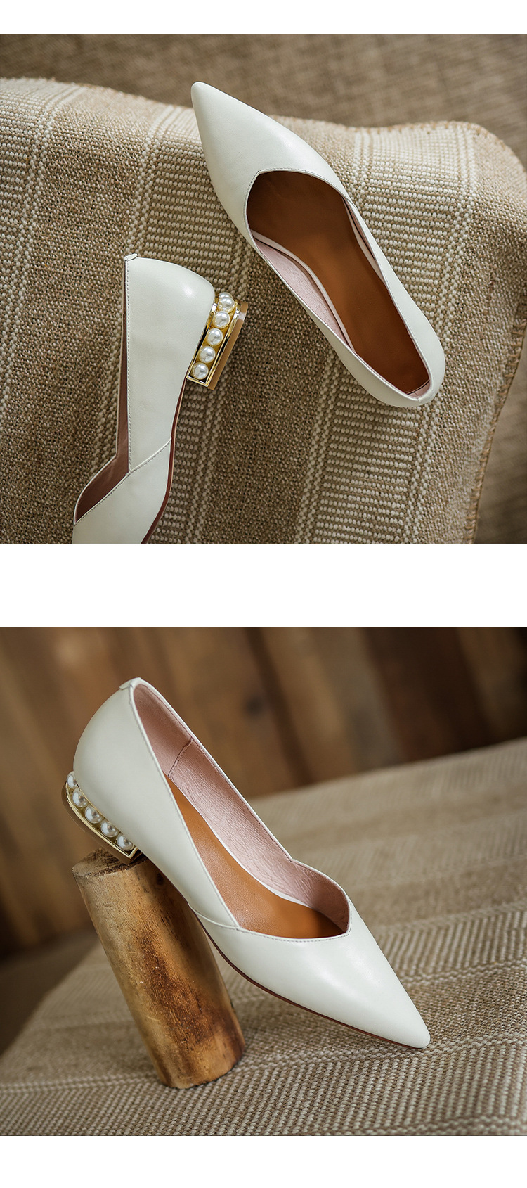 프랑스 복고풍 청키 힐 신발 여성용 2022 봄 새로운 소가죽 신발 낮은 굽 뾰족한 진주 여성 신발스토어 가기