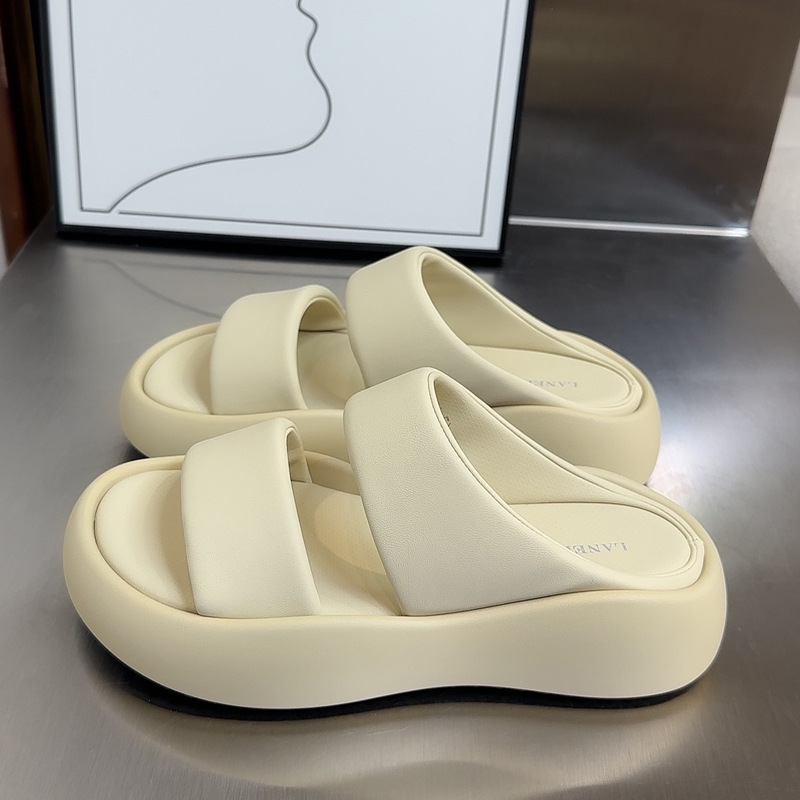 두꺼운 바닥 부드러운 가죽 슬리퍼 여성용 겉옷 여름 2023 새로운 고급 패션 모든 매치 여성 캐주얼 샌들