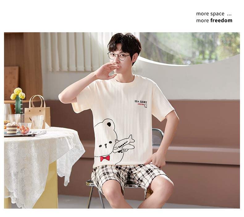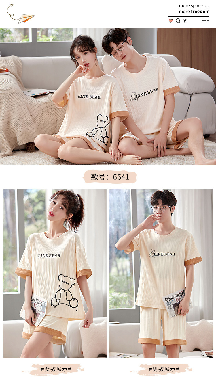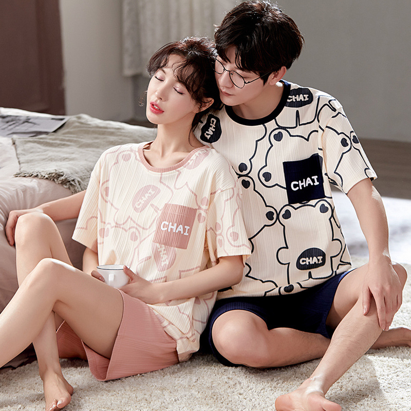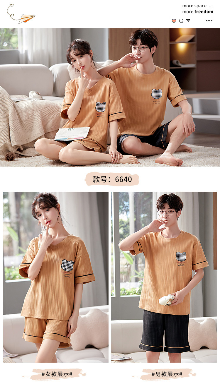 새로운 커플 잠옷 여성용 여름 면 반팔 반바지 얇은 한국식 피부 친화적 인 심플 남성 가정복 세트
