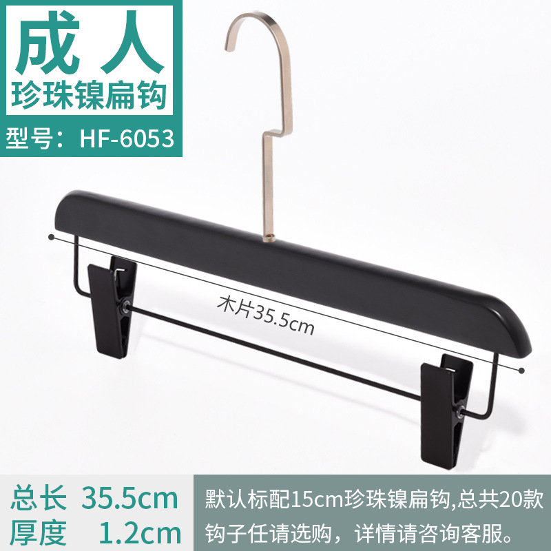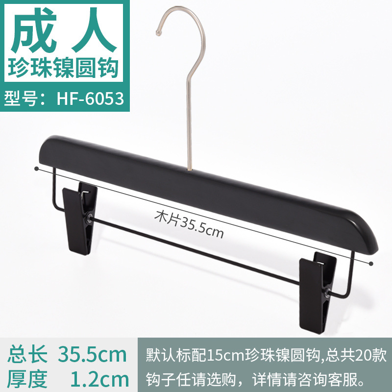도매 검은 의류 매장 단단한 나무 옷걸이 나무 가구 미끄럼 방지 플러스 사이즈 나무 성인 바지 랙 바지 클립 6053